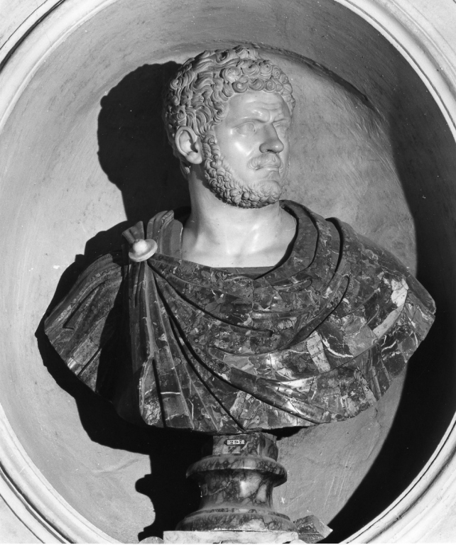 Dislocato entro una nicchia ovale, il busto poggia su di un basso basamento di forma circolare