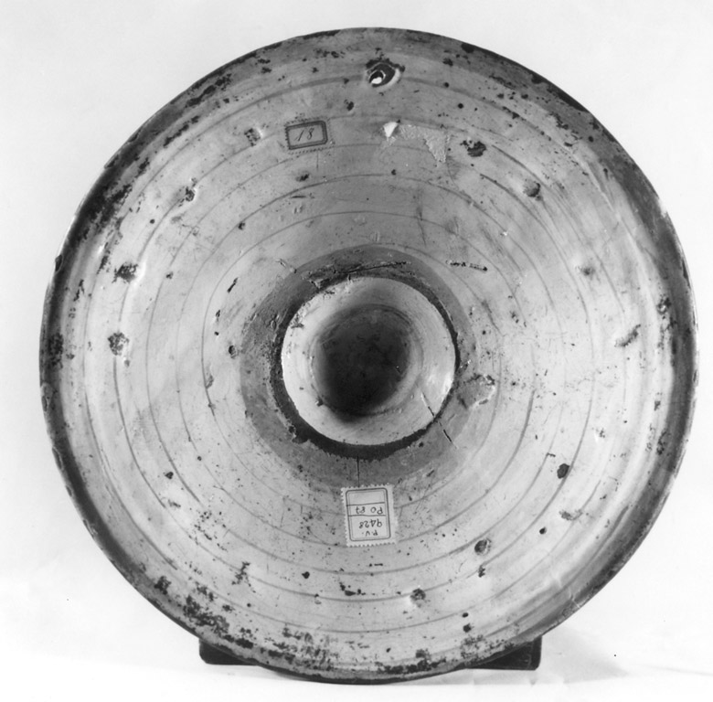 - NOTIZIE STORICO CRITICHE Periodo popolaresco. Esemplare del periodo di decadenza della fabbrica valenciana: lo si vede dalla scritta che compare come elemento decorativo, privo di significato. E' pure presente il motivo detto "zolfas" (solfeggio")