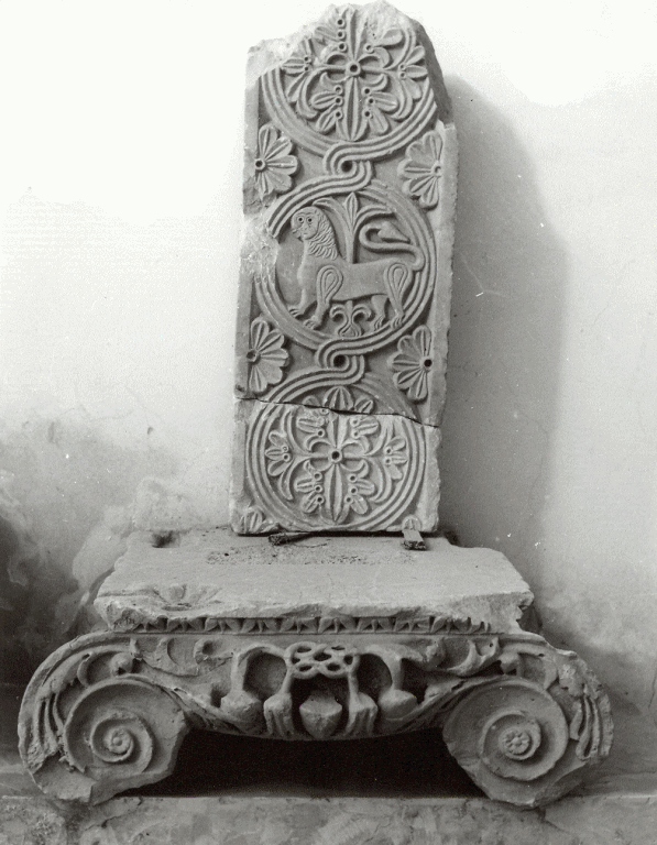 capitello ionico con volute laterali e motivo a nodo di Ercole sulla fronte