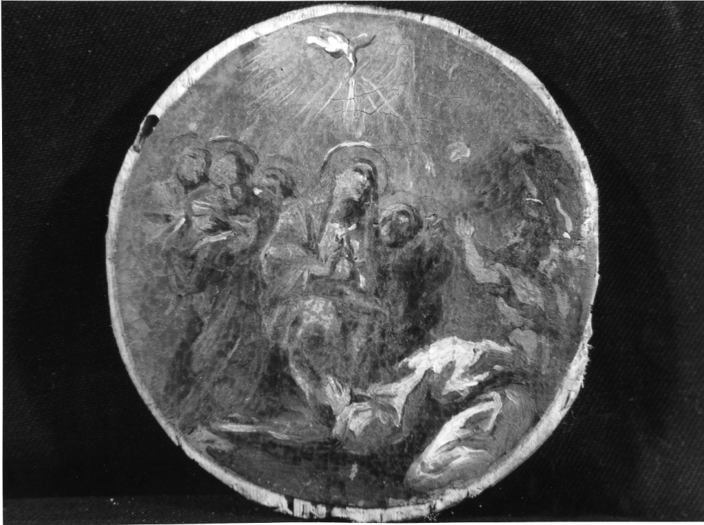 Personaggi: Madonna; apostoli. Allegorie-simboli: (Spirito Santo) Colomba