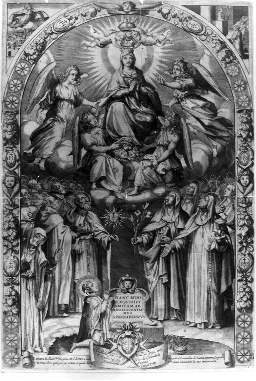 Ritratto della B.ma Vergine M.re di Dio ... San Bernardino da Siena in preghiera e Madonna incoronata tra gli angeli