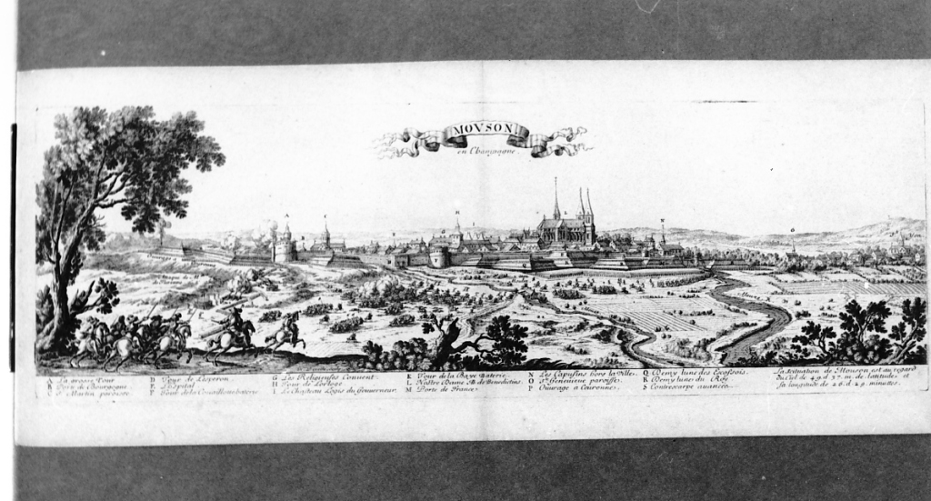 - ISCRIZIONI in basso - [...] N. Les Capusins hors la Ville Q. Demy lune des escossois [...] - corsivo -