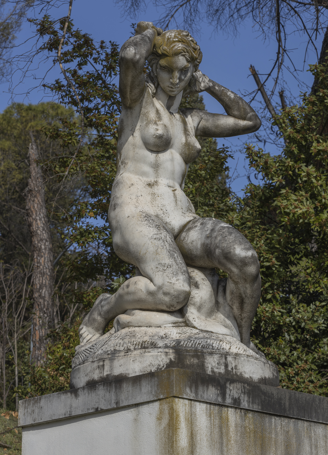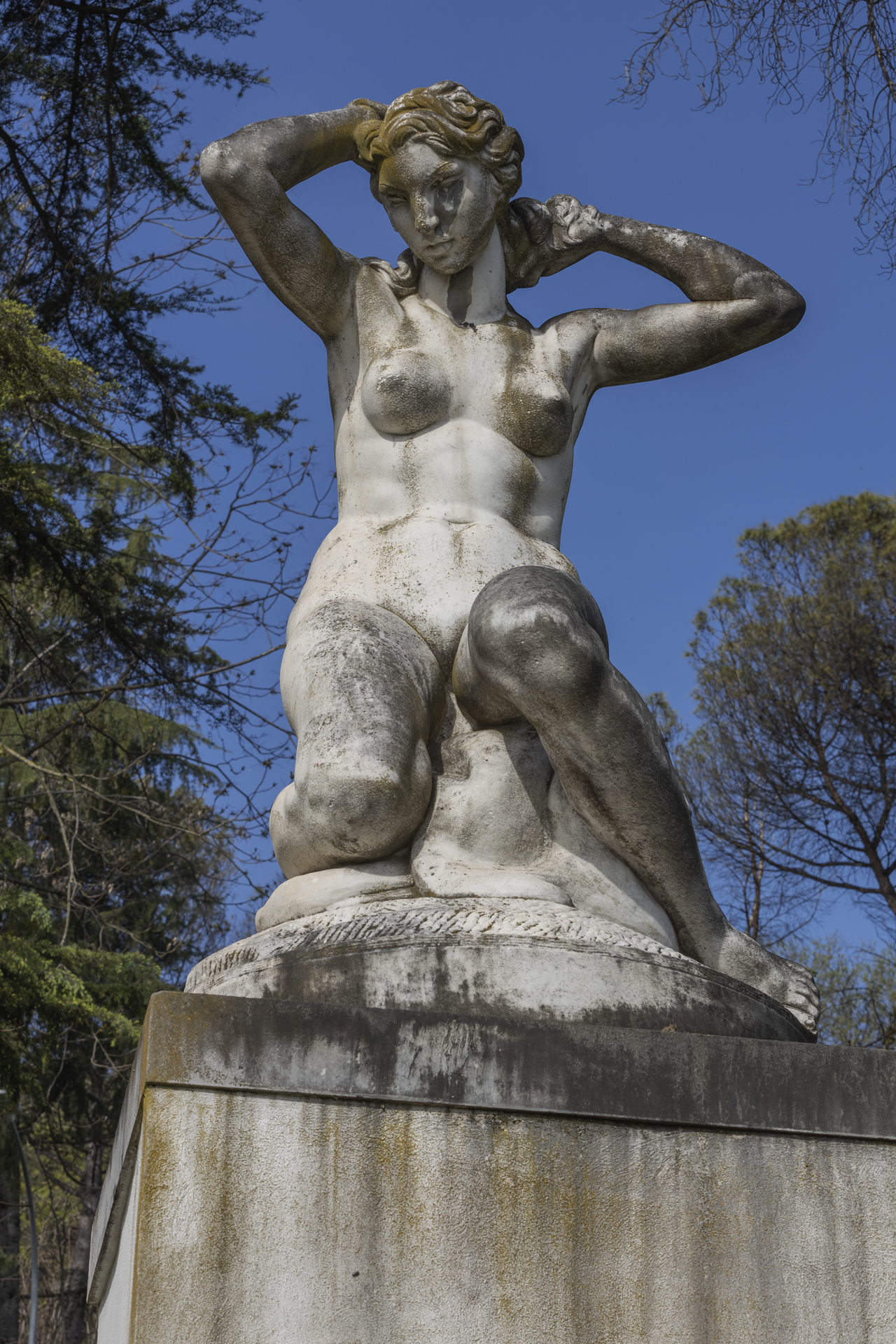 - NOTIZIE STORICO CRITICHE "Ritrovata" nel 2007 nella sua collocazione originaria, dove era celata alla vista da una folta vegetazione, la statua è stata inizialmente interpretata come Venere, Naiade o Diana e attribuita su base stilistica a Silvio Canevari. Il volume del Riccoboni attesta invece che è opera del carrarino Morescalchi, autore di due statue dello Stadio dei Marmi, il Giocatore di calcio e l'Arciere, connotate da un analogo modellato morbido e tornito. Intitolata semplicemente "Statua di giovane ignuda", l'opera è stata oggetto di pulitura da parte di CONI Servizi Spa. "L'ignudo della Bagnante - scrisse il Riccoboni -, unica figura femminile del Foro Mussolini, si fa ammirare per l'armoniosità della forma, per la grazia dell'atteggiamento e perla scioltezza della massa plastica" (Riccoboni 1942, p. 554). La posizione della statua, collocata su un alto basamento, è stata messa in relazione con il Teatro della Danza progettato e mai realizzato da Moretti sopra l'odierno Stadio del Tennis e sotto Villa Madama, progetto al quale si riconduce anche la collocazione della statua di Cacciatore di più recente ritrovamento. L'opera nella sua collocazione attuale è riconoscibile in una veduta aerea del Foro Mussolini effettuata nel 1938 (riprodotta in Mulazzani 2004, fig. 5)