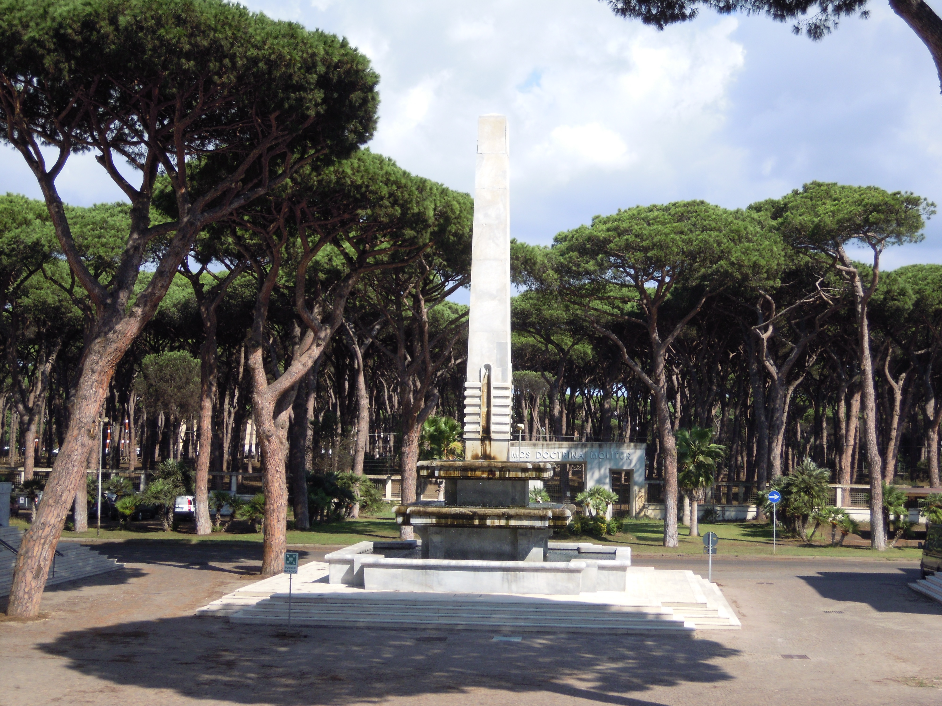 - NOTIZIE STORICO CRITICHE Posta al centro del cortile quadrilatero che unisce i diversi corpi di fabbrica, la fontana littoria - caratterizzata dalle peculiarità stilistiche tipiche del razionalismo architettonico fascista - è parte integrante dell'ex Collegio IV Novembre (1934-1936) progettato dall'architetto carrarese Giuseppe Boni. Docente presso il Politecnico di Milano e la Regia Scuola di Architettura di Roma, fu Accademico di San Luca e vicesegretario del Sindacato Nazionale Fascista degli architetti. Nel 1927 divenne membro, insieme a Vincenzo Fasolo e a Corrado Medori, del triumvirato per l'amministrazione straordinaria del Sindacato Architetti di Roma e Provincia. Fece inoltre parte del gruppo di progettisti, guidato da Gustavo Giovannoni, che nel 1929 aveva presentato la proposta per il Piano Regolatore Generale di Roma. Tra le sue realizzazioni, oltre il complesso ostiense, si ricordano in particolare il padiglione italiano all’Esposizione Internazionale del libro di Lipsia (1914), il palazzo delle Poste e Telegrafi e la casa del Balilla, realizzati a Carrara, sua città natale, rispettivamente nel 1933 e 1935, e il villino Scarlatti a Roma (1929). Sul complesso ostiense e sull'architetto progettista Giuseppe Boni, si rimanda alle notizie riportate nella scheda del contenitore fisico (ICCD_CF_8483344057361)