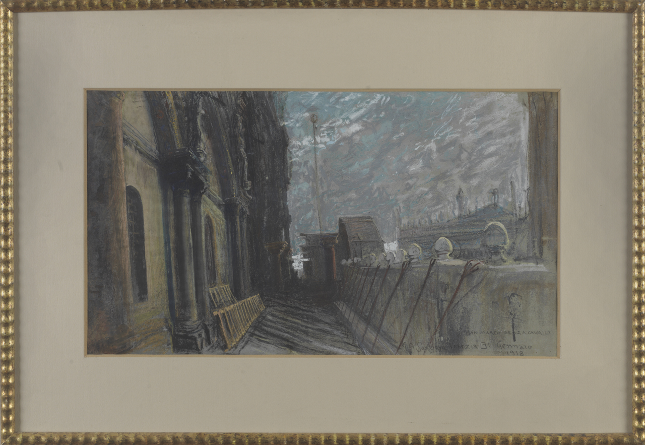 - NOTIZIE STORICO CRITICHE L'opera fa parte del ciclo dei quadri storici, probabilmente più di centosette, eseguiti da Aristide Sartorio, il quale documenta in prima persona, tra 1917 e il 1918, gli eventi bellici del conflitto della prima guerra mondiale. Usualmente per le sue composizioni, oltre agli schizzi da lui realizzati sui campi di battaglia, utilizza, come mezzo strumentale e punto di partenza, delle sue fotografie scattate mediate un apparecchio portatile, o quelle appartenenti al comando supremo dell'esercito italiano, al Fondo Ufficiali del Reparto dei Fotocineamatori. Le foto ufficiali talvolta recano sul retro il timbro "Sezione cinematografica del R. Esercito Italiano" con stemma sabaudo o "Laboratorio Fotografico del Comando Supremo" Sartorio fu uno dei primi pittori ad utilizzare la macchina fotografica, il cui uso, in quegli anni, si stava diffondendo rapidamente, rielaborando e modificando i vari scatti fotografici, ed utilizzando spesso molteplici foto, per poi creare i suoi dipinti. Per quest'opera impiega due fotografie. Le pitture raffigurano scene che l'artista vive in prima persona, sui campi di battaglia, in diverse zone del fronte, quando, liberato dopo due anni di prigionia, per l'eccezionale intercessione del Papa Benedetto XV, tornò volontario nelle zone di combattimento con il grado di sottotenente di cavalleria e assistette alla ritirata del Piave e alla riconquista del Delta. L'artista riporta, su tutte le opere, le indicazioni della località e della data di realizzazione del dipinto, per attestare le varie fasi del conflitto che coinvolse non solo gli uomini, ma anche i luoghi, dove il paesaggio diventa protagonista e rimanda a scenari di morte e di dolore. Sartorio nel 1924 fu nominato Commissario per le Arti e si recò in viaggio in Sud America sulla Regia Nave Italia. La crociera, organizzata su proposta di Gabriele D'Annunzio, durò otto mesi, ed era una esposizione per dimostrare il lavoro, la capacità e l’espressione artistica italiana, con lo scopo di diffondere la cultura e gli articoli italiani. L'artista portò con sé cento delle sue opere, tra le quali, sessantuno quadri a tema storico e tutti dipinti ad olio. Durante il viaggio furono visitate 40 città, nella tappa della nave del 21 aprile 1924, a San Paolo del Brasile, venne allestita una mostra con settantotto quadri di Sartorio e qui degli immigrati veneti acquistarono cinquantotto quadri dei sessantuno, dedicati alla Grande Guerra, per poi farne dono al Circolo Italiano di San Paolo, l'atto di donazione è del 6 maggio 1924. I quadri dell'artista non imbarcati sulla Regia Nave, circa quaranta, rimasero nello studio di Sartorio, alcuni venduti e altri, cinque oli e ventitré pastelli, ceduti nel 1934 al Museo Civico di Milano, dove è possibile ammirarli presso le Civiche Raccolte Storiche a Palazzo Moriggia. Alcuni quadri, conservati al Castello Sforzesco e provenienti dalla vedova Sartorio, andarono distrutti durante il bombardamento della seconda guerra mondiale, avvenuto nel 1943 e, di questi sono stati recuperati solo dodici pastelli. Le opere di Sartorio dedicate a "La Battaglia del Piave" testimonianza degli eventi bellici che si svolsero al confine tra Trentino e Veneto, tra il Regio Esercito italiano da una parte e le forze dell'Impero tedesco e dell'Impero austro-ungarico dall'altra e tutto ciò che è avvenuto fino al momento in cui il Delta venne riconquistato, stavano per essere vendute all'asta. Per questa ragione e per poter tutelare il ciclo pittorico, composto di disegni, oli e tempere, come documentazione sia storica che artistica di quel tragico periodo, nel 2000, appena reperiti i fondi necessari, l'intero complesso fu acquistato e restaurato dallo Stato italiano, dal Ministero degli Affari Esteri e della Cooperazione Internazionale. La presa in carico è datata 2003. Nell'archivio storico degli eredi Sartorio si conservano molte fotografie del pittore, del periodo bellico nelle quali, il più delle volte, è indicato anche il rimando al quadro di riferimento. Le mostre personali dell'artista dove furono esposte le opere aventi per soggetto la prima guerra mondiale furono le seguenti: vennero esposti una prima volta a Roma, in Campidoglio, nel gennaio del 1918 con la "Mostra degli studi e dei quadri eseguiti da Sartorio al Fronte Italiano", dove l’artista espose quarantacinque pezzi, venti dei quali riprodotti in cartolina dalla Casa d'Arte Bestetti e Tuminelli. A seguire, il 17 novembre del 1918, la "Mostra Nazionale della Guerra di Bologna" promossa dall'Associazione Nazionale per i Paesaggi e Monumenti Pittoreschi d'Italia, Palazzo Bonora. All'esposizione furono invitati a partecipare diversi artisti italiani, quasi tutti coinvolti nel conflitto e, soggetto comune, a tutti i quadri, era il tema della guerra. Le cento opere di Sartorio furono esposte nel loggiato al primo piano del Palazzo Bonora e ricevettero un grande interesse sia da parte della critica che dei visitatori, rimasero in mostra solo fino al 26 dicembre per poi essere esposte a Parigi e successivamente a Madrid. Il 21 di aprile 1924 nella tappa che fece la Regia Nave a San Paolo del Brasile, venne allestita una mostra con settantotto quadri ad olio di Sartorio. Dal 9 marzo al 24 aprile 1933 "Pitture di Giulio Aristide Sartorio" presso la Regia Galleria Borghese a Roma, Reale Accademia d'Italia. Cento opere furono inviate dal pittore, prima della sua morte avvenuta il 3 ottobre del 1932; era l'artista più anziano di tutti quelli presenti in mostra. "Giulio Aristide Sartorio: figura e decorazione", Roma, Palazzo di Montecitorio, Sala della Regina, dal 2 febbraio all’11 marzo 1989. "Giulio Aristide Sartorio 1924: Crociera della Regia Nave Italia nell'America Latina", a cura di Bruno Mantura, Maria Paola Maino, Bernardino Osio e Ludovico Incisa di Camerana presso Istituto Italo-Latino Americano (IILA) di Roma, dal 9 dicembre 1999 al 5 febbraio 2000. "Giulio Aristide Sartorio, la Battaglia sul