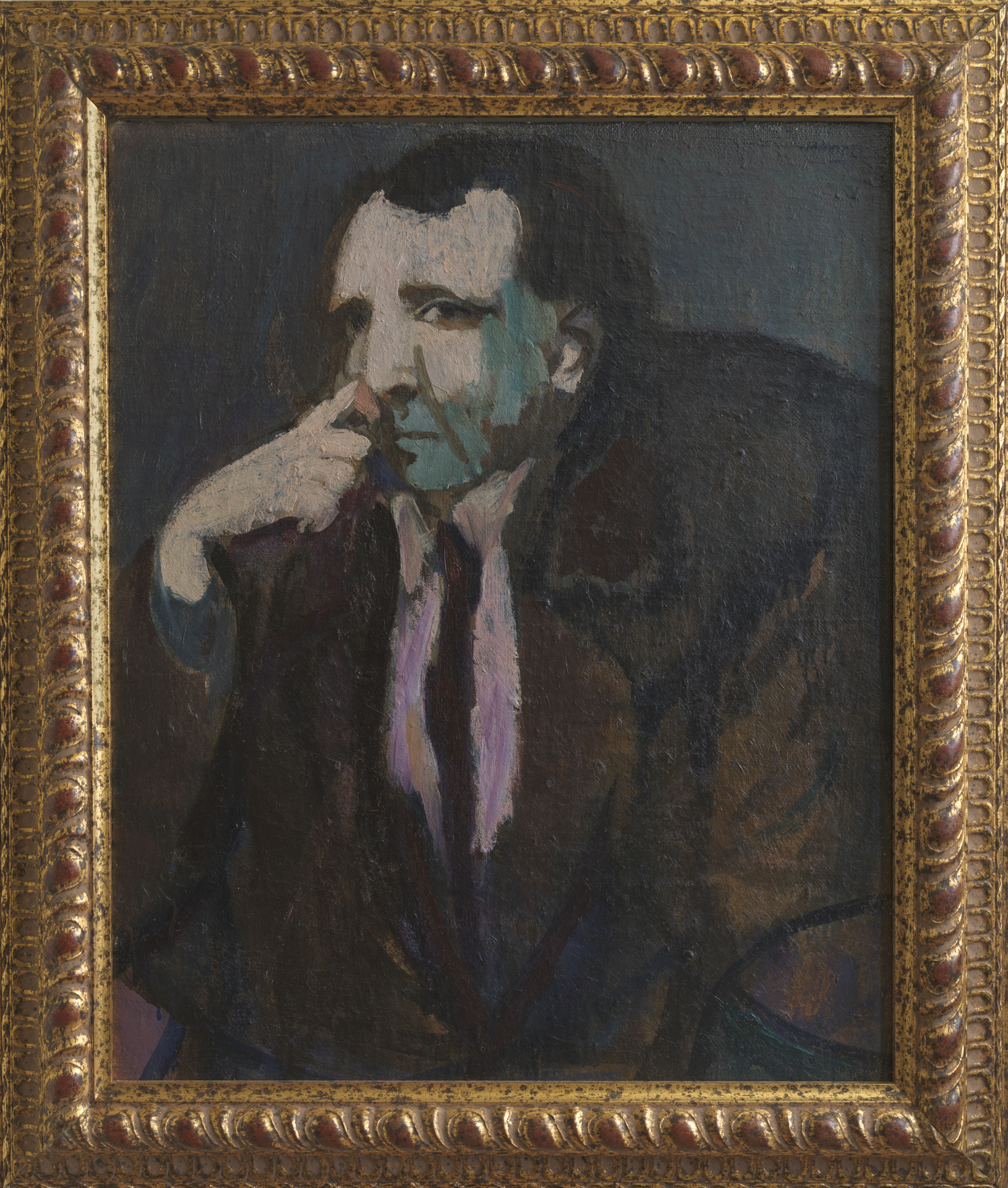 - NOTIZIE STORICO CRITICHE Soggetto del dipinto è il poeta Attilio Bertolucci (San Lazzaro Parmense 1911 – Roma 2000) ritratto nel 1948. Negli anni Quaranta Parma vive una stagione di grande vivacità culturale. Al Circolo di lettura e conversazione e ai caffè Brizzi e dell’Orologio si incontravano giovani intellettuali come Mattioli, Bertolucci, Mario Luzi, Oreste Macrì, Giacinto Spagnoletti, Pietro Bianchi. Sia Bertolucci sia Mattioli collaborano, inoltre, con il giovane editore Ugo Guanda, il primo dirigendo alcune collane e il secondo curando la grafica delle pubblicazioni. Sono almeno sei i ritratti di Bertolucci realizzati dall’artista tra il 1946-47 e il 1958. Presso l’Archivio Carlo Mattioli di Parma sono conservati, inoltre, ulteriori due ritratti, uno a matita e uno a inchiostro. In tutti i dipinti il poeta è raffigurato di profilo o di tre quarti con una mano appoggiata sul viso. Nel 1994, alla morte del pittore, Bertolucci ha scritto la poesia Carlo Mattioli (in memoriam): “Tu miope e pure di vista così acuta / che nei molti ritratti di me – senza che posassi - / hai messo a nudo la mia / malinconia (follia?) / il mio amore per Baudelaire e Courbet / imitando appena variata / la figura del poeta / nello studio del pittore” (A. Bertolucci, Le poesie, Milano 1990, p. 413). Il testo si riferisce a uno dei ritratti realizzati da Mattioli in cui il poeta siede al tavolo da lavoro, citando il ritratto di Baudelaire realizzato da Courbet (Montpellier, Musée Fabre). Analoga impostazione con la figura di profilo o di tre quarti, talvolta seduta al tavolo da lavoro, caratterizza anche altri ritratti eseguiti negli stessi anni: Aldo Borlenghi (1942), Giacinto Spagnoletti (1943), Pietro Bianchi (1945), Oreste Macrì (1949). L’opera proviene dalla collezione Assitalia, storica compagnia assicurativa statale, parte dell’INA, privatizzata a partire dal 1992 e fusa l’1 luglio 2013 con le Assicurazioni Generali con la denominazione Generali Italia S.p.A. La raccolta, ospitata palazzo dell’INA progettato da Marcello Piacentini, comprende opere significative del Novecento italiano ed è nata per volontà del senatore Giovanni Pieraccini, all’epoca presidente dell’Istituto, che aveva acquistato tra il 1981 e il 1982 i primi dipinti di de Chirico e Boccioni. Attraverso una puntuale campagna di acquisti di anno in anno la collezione si era, in seguito, arricchita di opere, rigorosamente selezionate per la loro importanza all’interno della produzione degli artisti selezionati