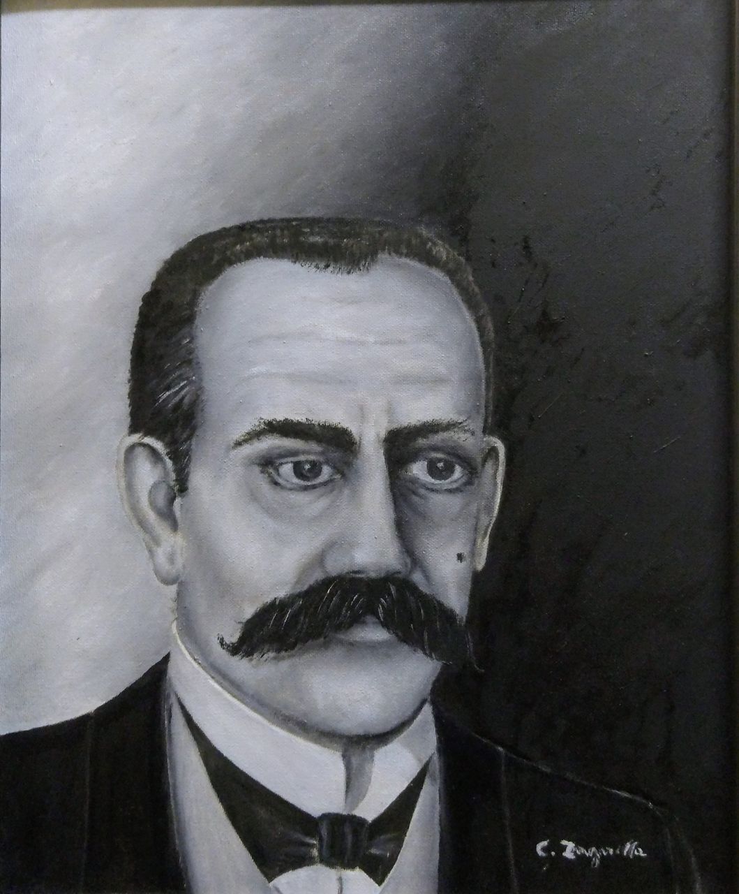 - NOTIZIE STORICO CRITICHE Il dipinto ritrae in bianco e nero Nicolò Gallo (1849-1907), uomo politico siciliano appartenente alla Sinistra storica, che ha svolto gli incarichi di Ministro della Pubblica Istruzione del Regno d'Italia, Ministro di Grazia e Giustizia e presidente della Camera dei Deputati del Regno d'Italia. Si tratta della riproduzione ad opera di Carmelo Zagarella di una fotografia di Gallo, scattata dai fratelli Antonio e Paolo Francesco D'Alessandri, fotografi di origine aquilana attivi a Roma nella seconda metà dell’Ottocento. Non è stato possibile ricostruire la personalità dell’autore del dipinto, caratterizzata da una evidente fissità, dovuta probabilmente anche alla sua origine