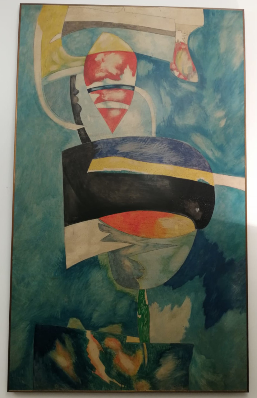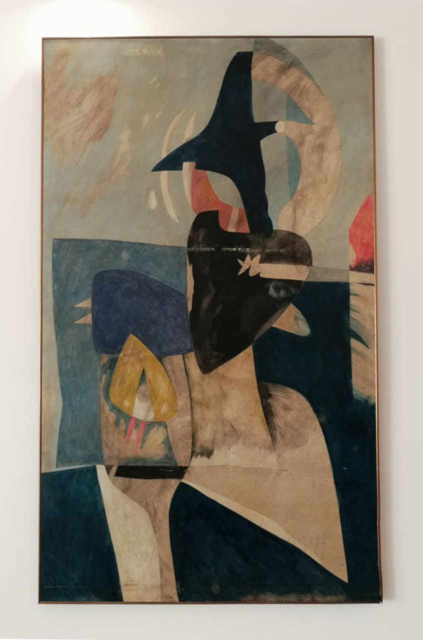 - NOTIZIE STORICO CRITICHE La serie di pannelli proviene dalla turbonave Michelangelo, dove era esposta nella galleria che collegava i saloni di prima classe alle sale comuni di classe cabina, sulla parete opposta a quella con pannelli di Salvatore Fiume (NCTN 1201389109- 1201389112). Ne è autore Gianni Dova, artista che nel corso della sua carriera ha sperimentato generi e tendenze diverse, dall’adesione allo spazialismo di Fontana e alla pittura nucleare con Enrico Baj e Sergio Dangelo negli anni Cinquanta fino ad approdare negli anni Sessanta al Surrealismo con richiami ai lavori di Max Ernst. Come le altre opere che decoravano i transatlantici della Società Italia di Navigazione, in seguito alla radiazione delle navi dal servizio passeggeri (l. 684/1974, art. 16) il dipinto è stato assegnato al Ministero dei Beni Culturali