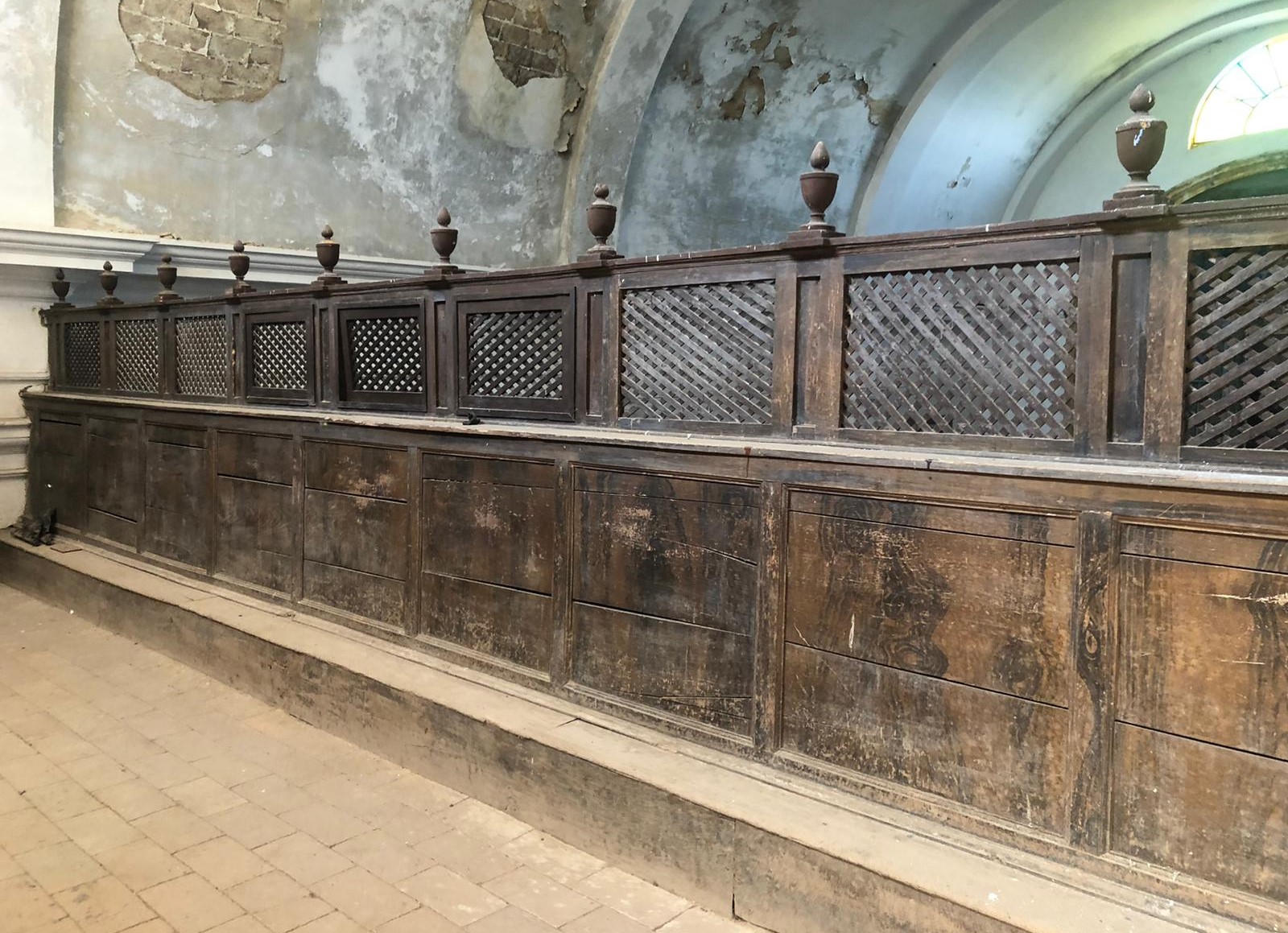 - NOTIZIE STORICO CRITICHE L'esecuzione del manufatto è collocabile negli anni del restauro della chiesa di San Sebastiano condotti tra il 1851 e il 1855; in tale occasione a sostegno della cantoria furono poste le due coppie di colonne provenienti dall'abbazia di Sant'Andrea in Flumine (Ramieri 2000, pp. 89, 140)