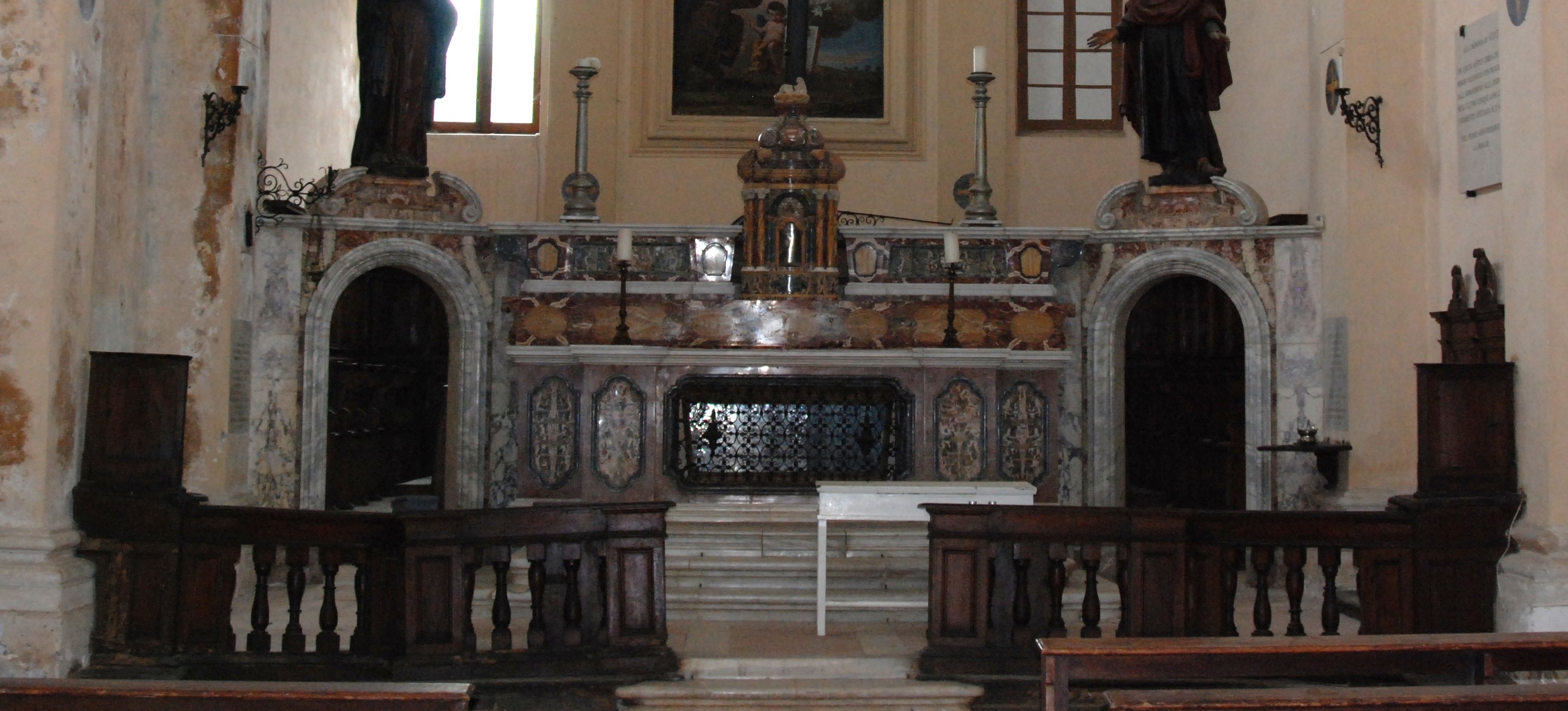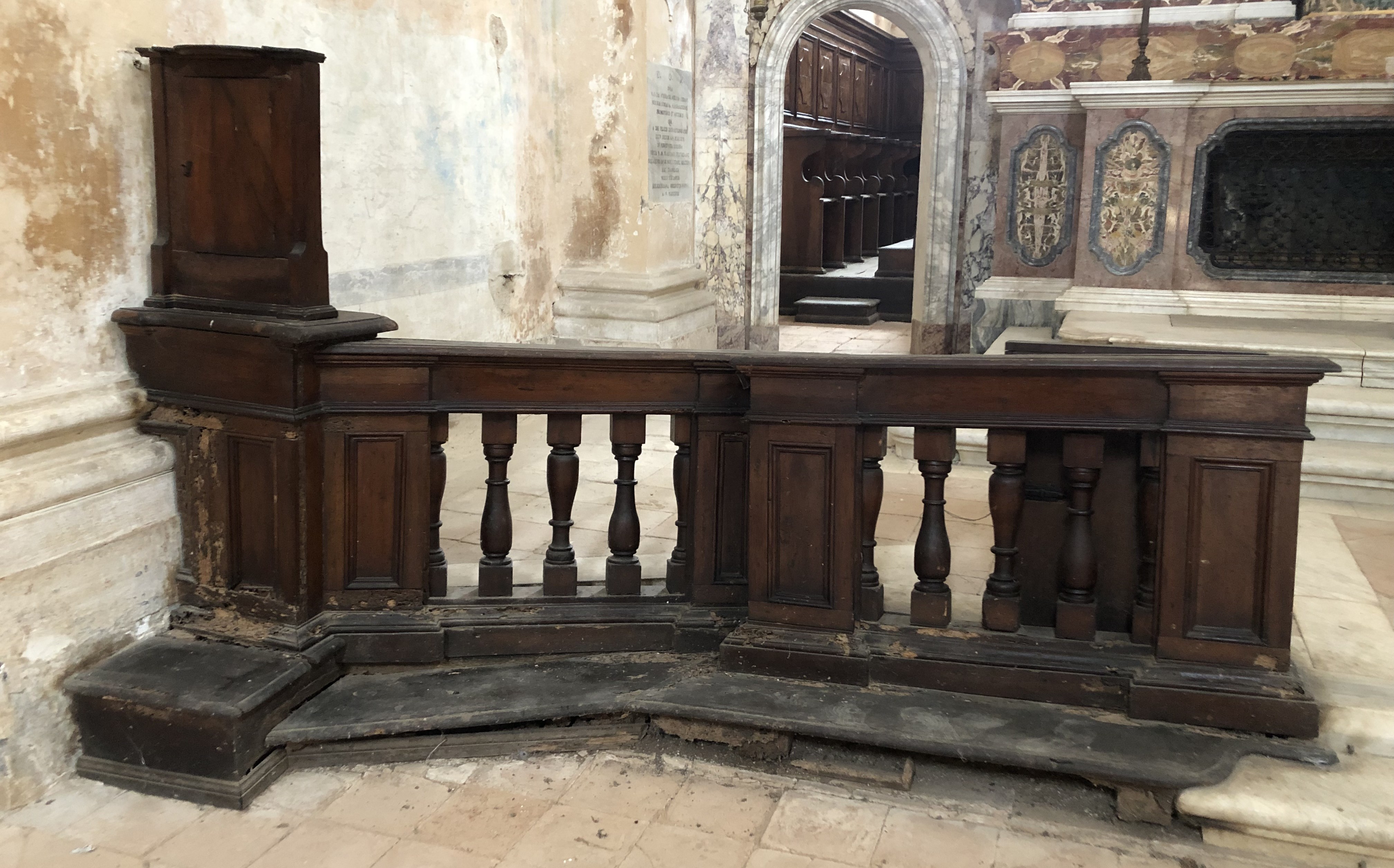 - NOTIZIE STORICO CRITICHE Tra gli arredi lignei della chiesa di San Francesco, il coro e il badalone sono documentati come lavori di Frate Tommaso da Firenze e Frate Giordano da Palestrina che li eseguirono tra il 1757 e il 1760 impiegando legno di noce donato dai nazzanesi; a loro sono ricondotti anche i confessionali. Si può quindi ipotizzare che agli stessi artigiani spetti la balaustrata, che si armonizza pienamente con gli altri manufatti lignei
