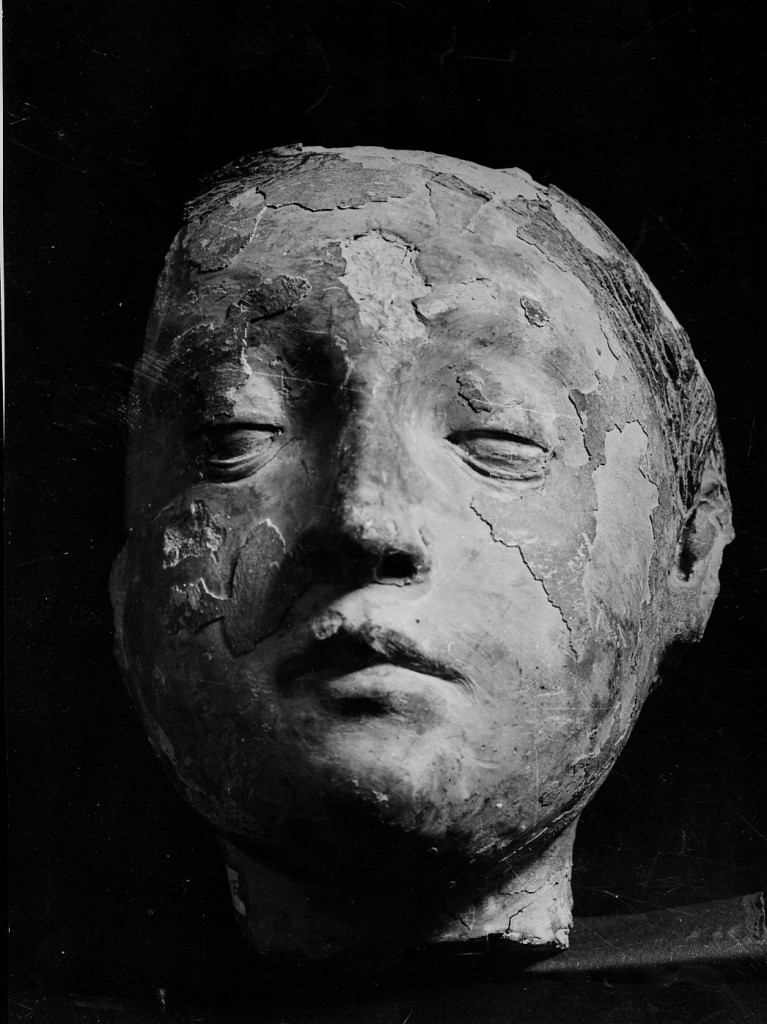 Si tratta del frammento di una testa femminile di dimensioni poco inferiori al vero. E' conservato il volto con gli occhi rivolti verso il basso e una piccola porzione della capigliatura