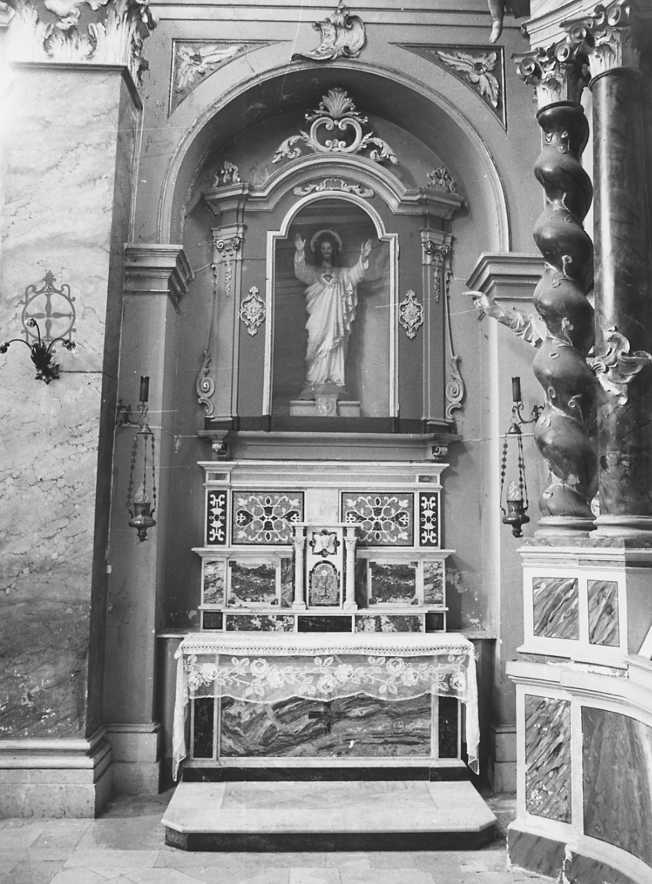 - NOTIZIE STORICO CRITICHE Altare ricostruito nel 1975 con materiale di recupero del precedente altare maggiore seicentesco