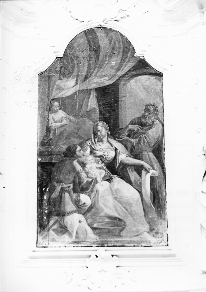 Due donne sorreggono il piccolo Giovanni; sulla destra una figura maschile; in secondo piano, sulla sinistra, è la madre di Giovanni, Elisabetta