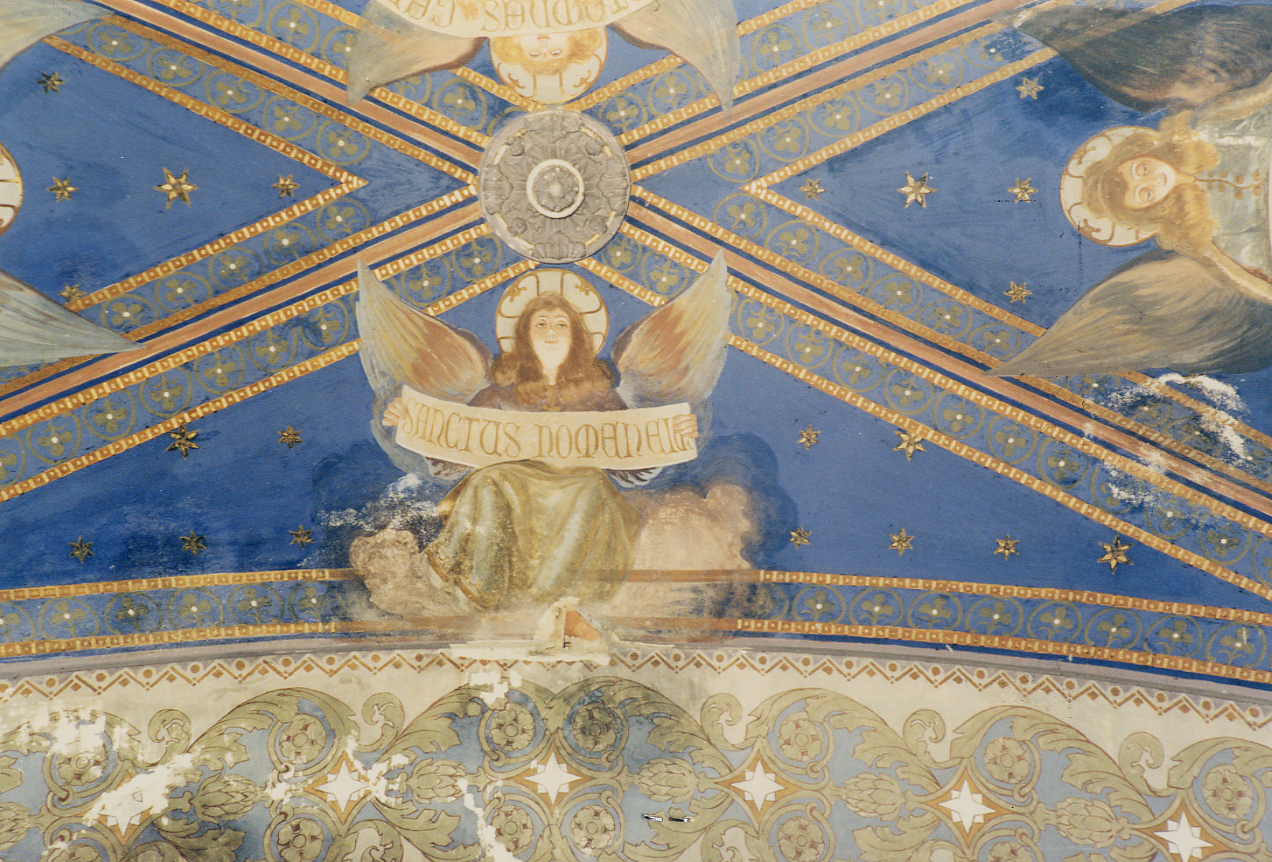 - ISCRIZIONI sul cartiglio - SANCTUS NOMEN EIUS - caratteri gotici - a pennello - latino