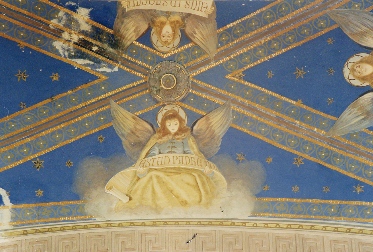 - ISCRIZIONI sul cartiglio - EST AD PADRE NOSTRO - caratteri gotici - a pennello - latino