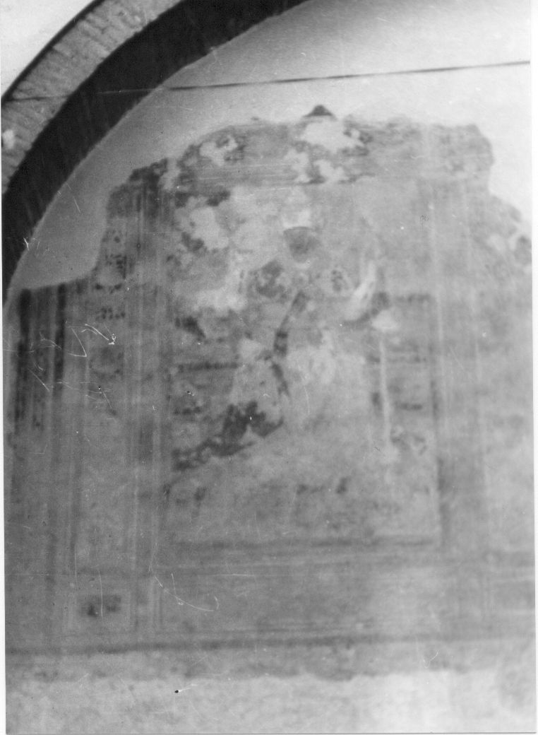 A sinistra è raffigurato un Santo con abiti vescovili assiso su tronetto