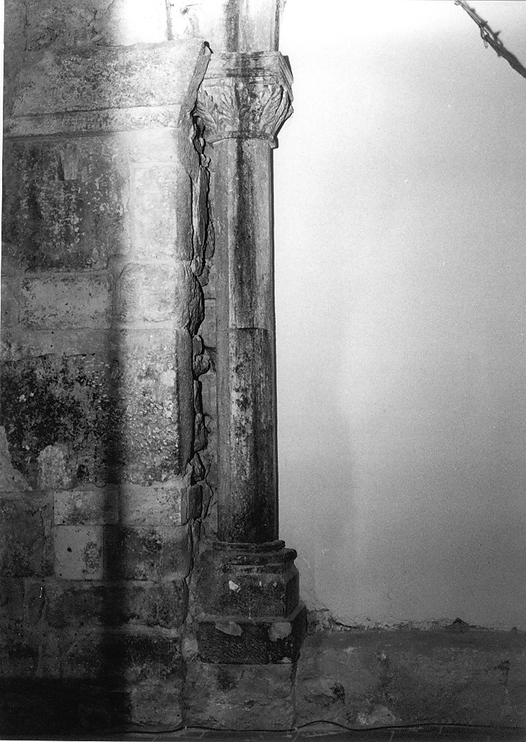 La colonna ottagonale si erge su base quadrata e presenta un capitello decorato con foglie d'acanto
