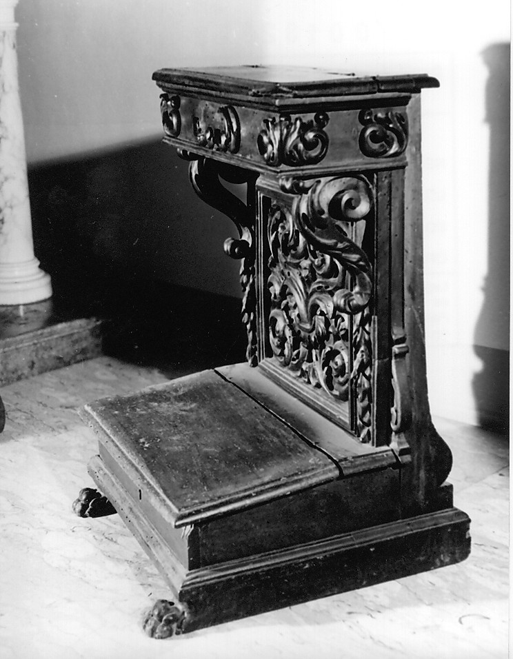 - NOTIZIE STORICO CRITICHE L'inginocchiatoio trova la sua caratteristica più originale nella ricchezzza degli intagli realizzati con precisa e puntigliosa esecuzione
