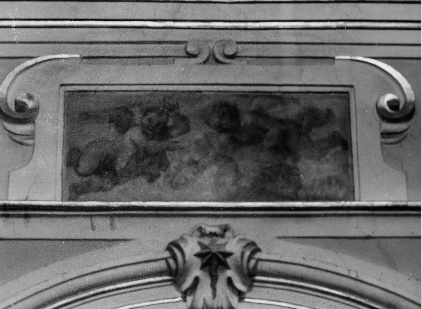IL DIPINTO RAFFIGURA DUE ANGELI CHE RECANO CORONE