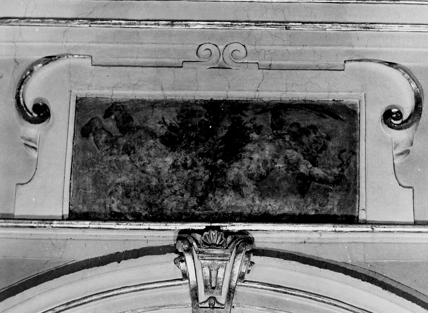 IL DIPINTO RAFFIGURA TRE ANGELI IN VOLO CHE RECANO FIORI, LA PALMA E UNA VERGA