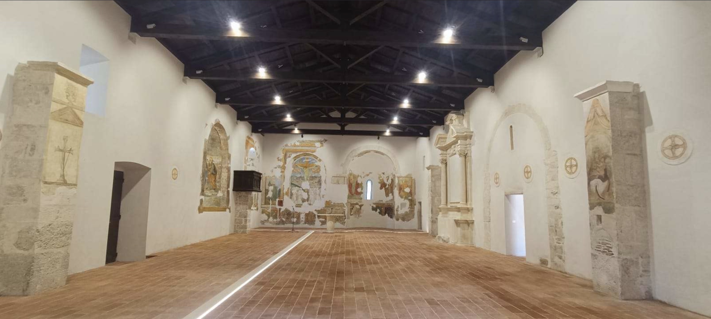 - NOTIZIE STORICO CRITICHE La chiesa, ricostruita nel corso del XII secolo, subì importanti modifiche tra Cinque e Seicento. L'affresco con la Madonna e il Bambino fu realizzato in tale arco cronologico, nell'ambito dei cantieri pittorici che portarono alla decorazione delle nicchie aperte lungo i muri perimetrali. Nel pilastro opposto al lacerto pittorico in oggetto, anch'esso monco e la cui funzione è ancora tutta da chiarire, è raffigurata una croce