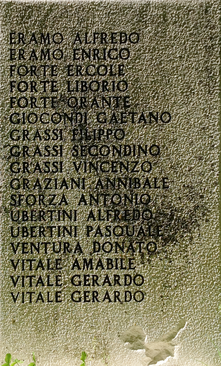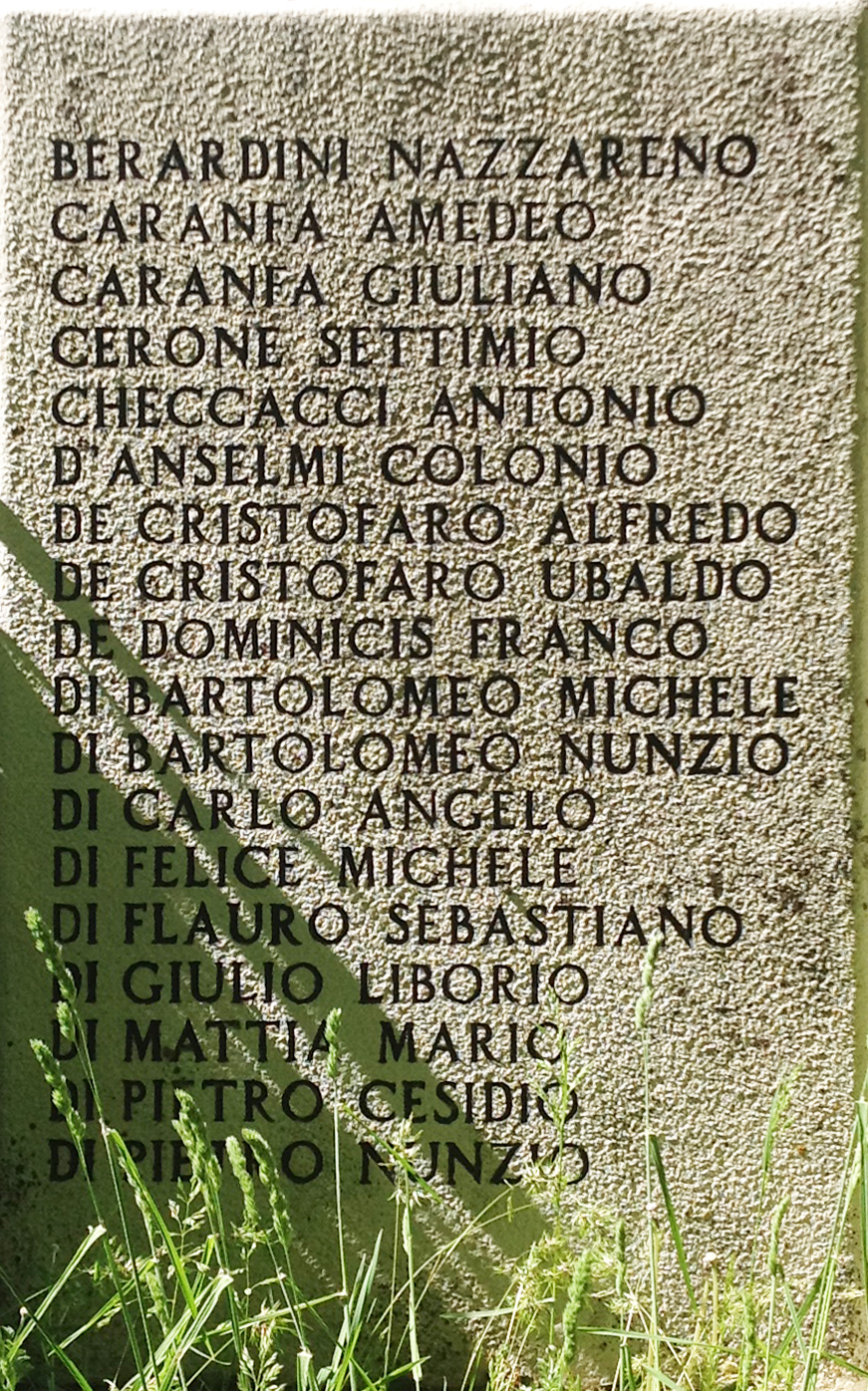 - NOTIZIE STORICO CRITICHE L'opera è stata realizzata nel 1996 dal pittore e incisore locale Luigi Eramo, come riportato sulla targa bronzea apposta sul basamento. La scelta del materiale reperibile in loco, pietra calcarea dell'Appennino, e della figura allegorica dell'Aquila, testimonia la grande passione naturalistica dell'artista, riscontrabile anche in un'altra opera dell'Eramo, il Cippo ai Caduti senza Croce di Collelongo, sulla quale è incisa una stella alpina