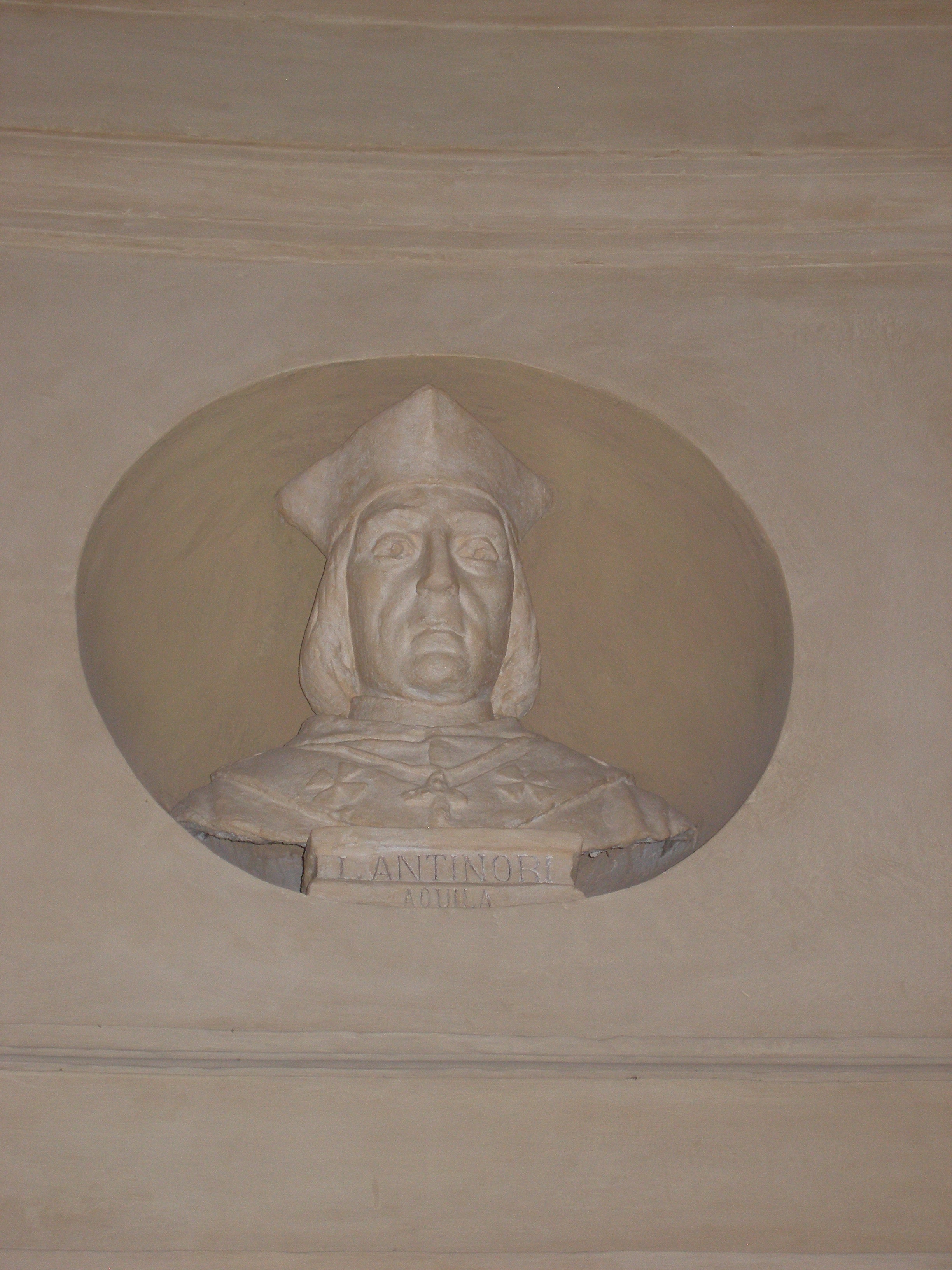 - NOTIZIE STORICO CRITICHE Il busto fa parte di un insieme di 16 ritratti scultorei posti nel 1888 sotto il portico centrale del Palazzo delle Esposizioni. In origine, al momento della trasformazione del Convento dei Cappuccini in Palazzo delle Esposizioni, era prevista la collocazione nelle nicchie dei ritratti delle personalità illustri della Provincia aquilana, tra le quali Antinori. Tuttavia nel 1928 alcuni busti messi a dimora nel 1888 vennero sostituiti con "sei busti delle Medaglie d'oro della Provincia"