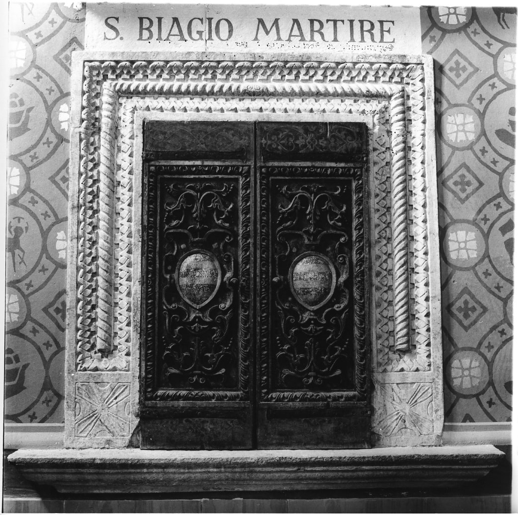 - NOTIZIE STORICO CRITICHE Eleganti lavori ad intaglio riferibili ad artigianato locale. Si possono datare agli inizi del XVII secolo, come testimoniano le cornici tardo-cinquecentesche a becelli e conferma il fatto che gli sportelli furono messi in opera, su commissione di Francesco Carafa, espressamente per la Cappella del Tesoro, fondata nel 1609