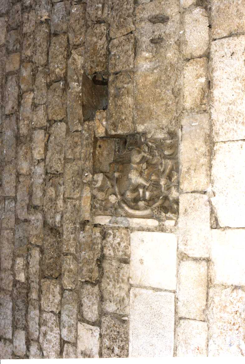 - NOTIZIE STORICO CRITICHE Il rilievo, insieme all'altro, raffigurante un leone rampante e tralci di vite, doveva far parte della decorazione scultorea dell'antica cattedrale. Le caratteristiche inducono infatti alla datazione alla seconda metà del secolo XII, piuttosto che al secolo XIV, come proposto nella vecchia scheda di catalogo ( cfr. O. Muccilli, op. cit., in bibliografia). Elemento di spoglio, la formella è stata inserita nella fiancata della rinnovata cattedrale probabilmente durante la ricostruzione seguita al violento terremoo del 1456, che distrusse l'intero abitato di Bojano.Quanto al soggetto, il pessimo stato conservativo della formella non ne consente una lettura chiara; tutavia sembra di potervi riconoscere una scena di centauromachia. In Trombetta (op. cit. in bibliografia) si descrive un cinghiale che accosta a sè i suoi piccoli, come per difenderli dal grosso serpente che si distende a semicerchio nella formella. Il tutto compreso all'interno del groviglio di animali e teste umane inseriti in tralci di vite che caratterizza anche un'altra formella