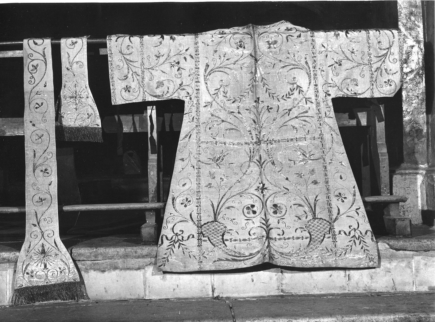 Manipoli realizzati in seta laminata. Il ricamo a filo d'oro disegna arabescature floreali e vegetali