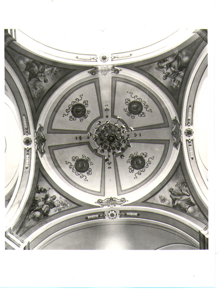 - NOTIZIE STORICO CRITICHE La scheda e la datazione del ciclo si riferiscono esclusivamente agli stucchi in quanto gli affreschi degli Evangelisti sono di fattura recente (XX secolo ) e sono attribuibili allo stesso pittore che ha operato nell'abside