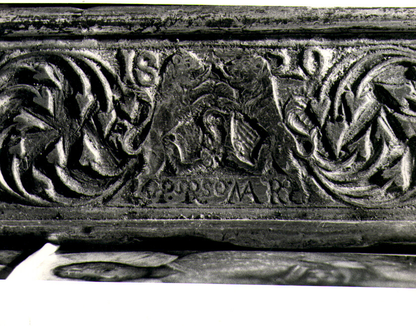 - ISCRIZIONI al centro del fregio - 1520/ P.s R.so NA R° - lettere capitali - a incisione -