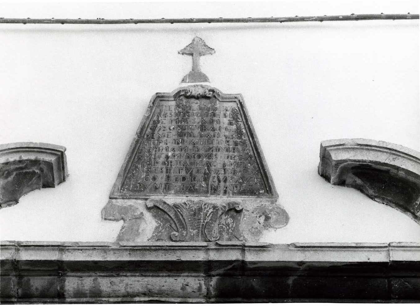 - ISCRIZIONI epigrafe - D.O.M./ TEMPLI HUIUS/ ABSIDEM MEDIA/ DE MISSAM ET/ SUB OBSCURAM AC/ PENE COLLABASCE/ TEM IN ALTIOREM/ FORMAM LUMINIBUS/ AUCTAM NOVIS ORGA/ NIS PORTA HAC AMPLIO/ RI RESTITUTA AERE PU/ BLICO REDIGI CURAVE/ RUNT SAEPINATES - lettere capitali -