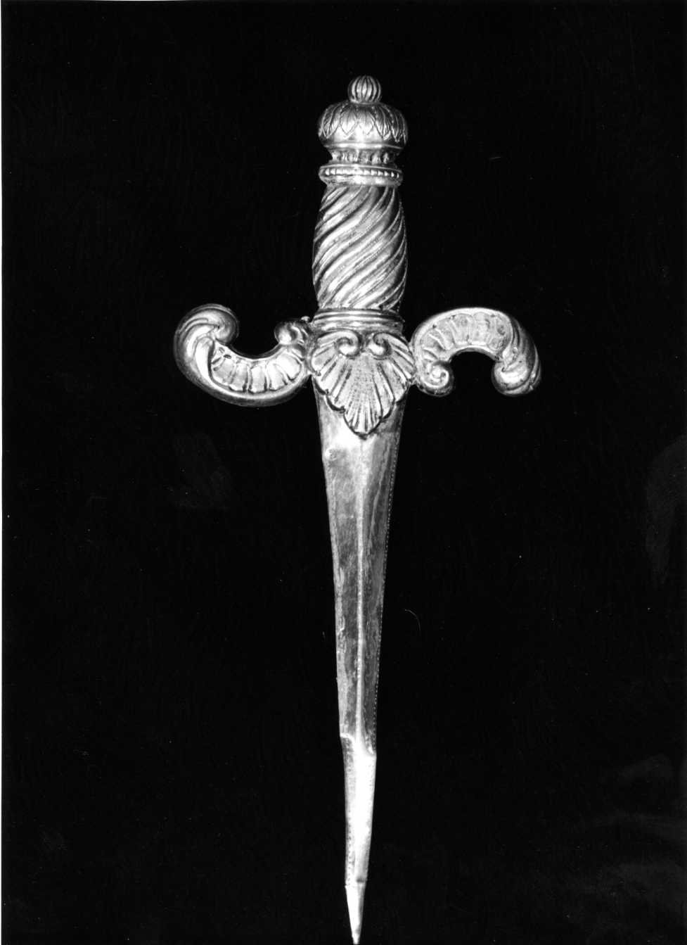 - NOTIZIE STORICO CRITICHE Il pugnale è dtabile tra il 1839 e il 1872 per la presenza del punzone di garanzia in uso nel napoletano appunto in quegli anni. (Cfr. E.C. CATELLO, Argenti napoletani dal XVI al XIX secolo, Napoli 1973, pp. 114-116)