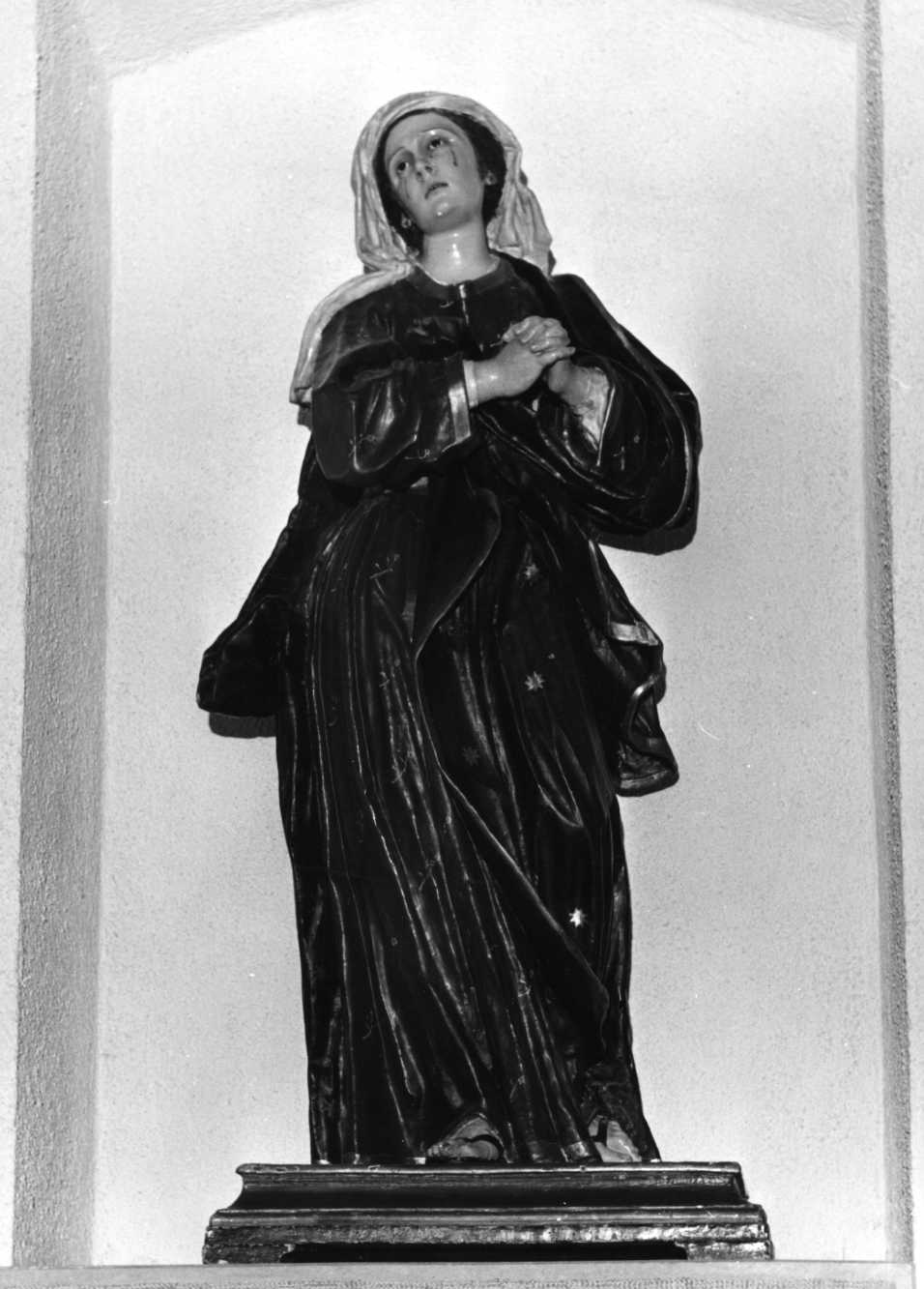 La statua raffigura la Madonna, con una veste rosso cupo con ricami floreali e un manto azzurro decorato con stelle dorate; ha il capo coperto da un velo bianco. Le mani sono intrecciate in segno di preghiera. Il viso è rigato da lacrime di colore scuro. Tutta la statua fa perno sulla gamba destra, il piede sinistro è leggermente arretrato, la testa inclinata di lato