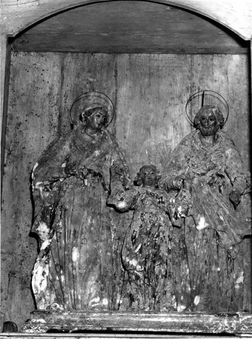 Il gruppo scultoreo è collocato entro un'edicola di legno. Rappresenta la Vergine e San Giuseppe che tengono per mano il Bambino posto al centro e leggermente avanzato. Le statuette sono in cartapesta con teste in legno. L'attacco delle muffe su tutta la superficie ha determinato il deterioramento dell'opera con la caduta pressocchè totale del colore