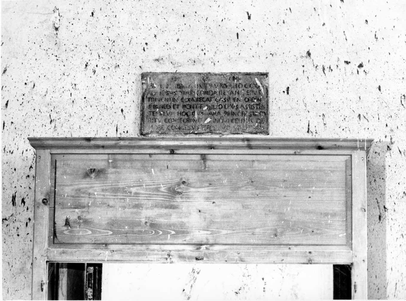 - ISCRIZIONI epigrafe - D.O.M./ ...B...A PARTU VRG A MDCCXXV/ ALPHOSUS MARICONDA II E FAM...EPUS/ TRIVENTIN CONGREGAT CASS...EN ORDIN/ S.BENED ET PONTIF SOLIO EPUS ASSISTES/ TEMPLUM HOC CUM ARA PRINCIPE STATO/ RITU CONSECRAVIT et INDULGENTIS DE/ MORE CONCESSIS PERPETUO VALITURIS - lettere capitali -