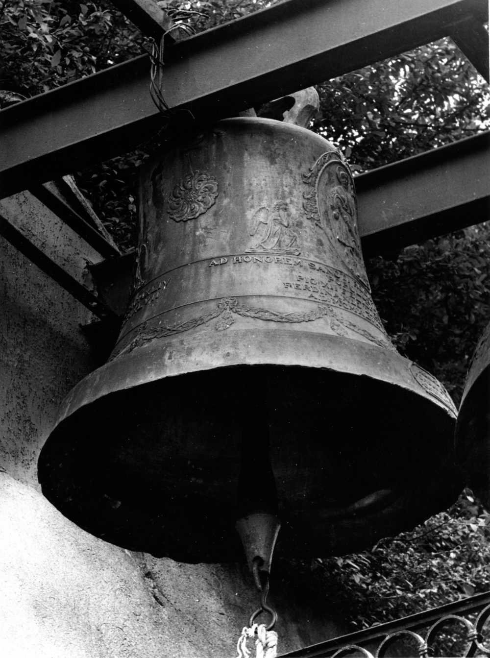 - ISCRIZIONI sulla campana - AD HONOREM SANCTI ROCHI PRAECLARI PATRONI/ POPVLVS DICAVIT/ PIO XII FELICITER REGNANTE/ FERDINANDO DI CERONIRO PAROCHO/ A.D. MCMXLVII MONACILIONENSIS..PREMIATA/ FONDERIA/ PONTFICIA GR.UFF. ARMANDO MARINELLI E FIGLI/ AGNONE - lettere capitali - a rilievo -