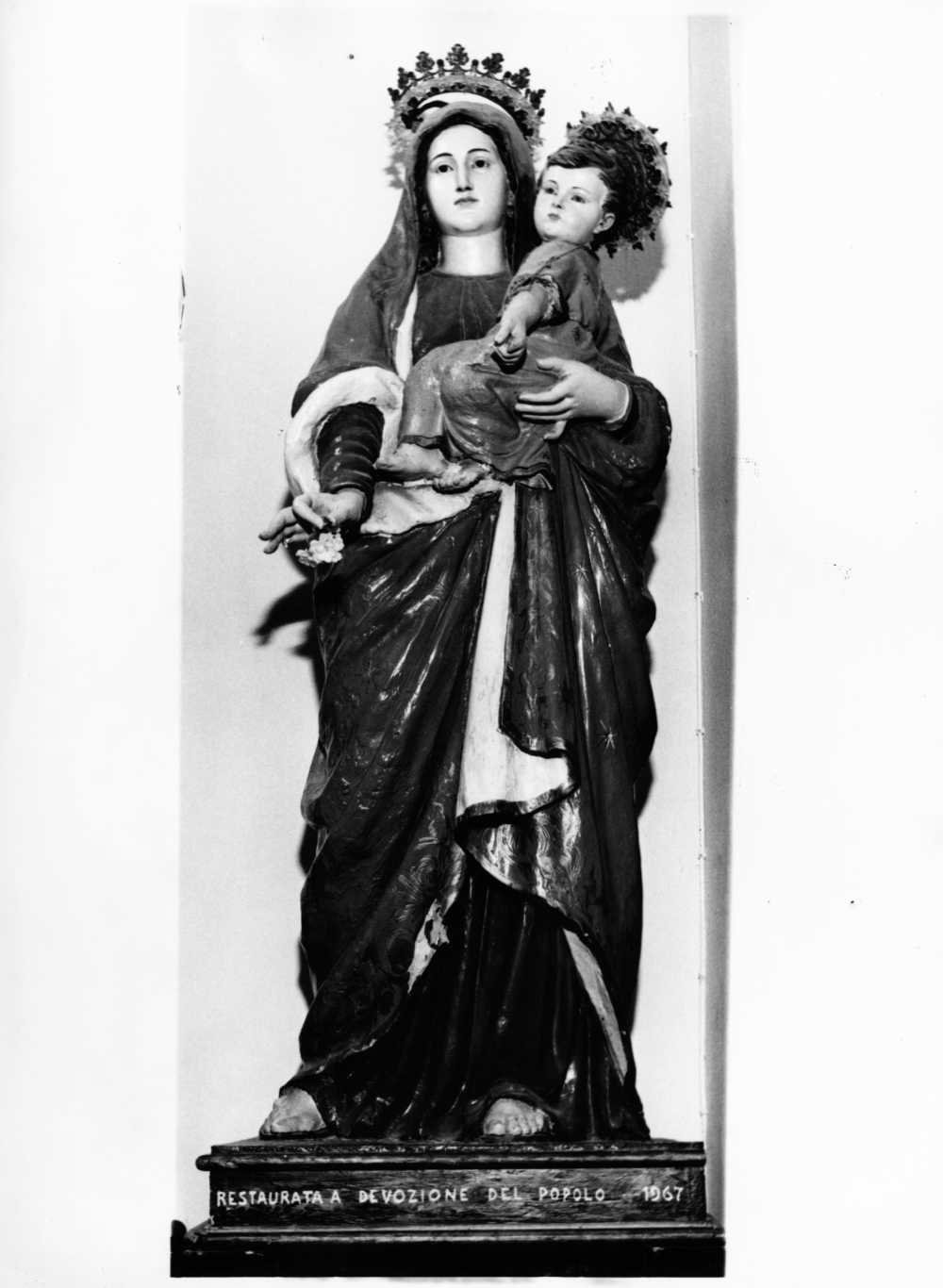 Il gruppo scultoreo rappresenta la Vergine con in braccio il Bambino e tiene con la destra dei fiori. Corone metalliche sono appoggiate sui capi. Le vesti sono dipinte con colori accesi (rosso, azzuro, verde chiaro)