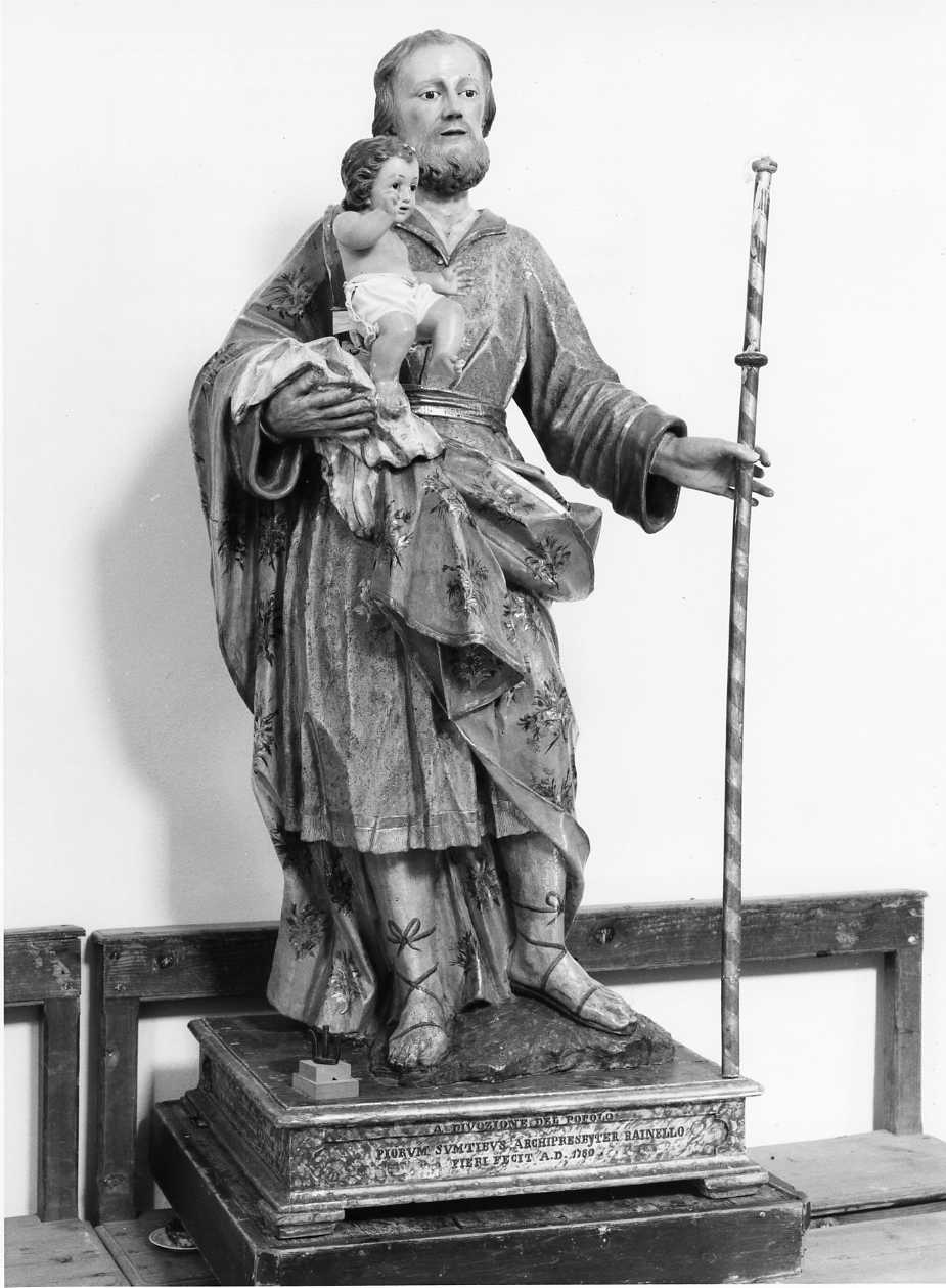 - NOTIZIE STORICO CRITICHE Il bambino originario è stato rubato e sostituito con una immagine recente . Le iscrizioni apposte sulla base, anche se rifatte, documentano la commi ttenza da parte dell'arcipresbitero Rainello, la data di esecuzione (1780) e il nome dell'autore, Silverio Giovannitti. La statua in oggetto present a alcune somiglianze con il San Bartolomeo della chiesa di S. Maria Assunt a di Provvidenti e il taglio geometrizzante dei panneggi caratteristico de lle opere dello scultore oratinese. La statua in oggetto figura infatti ne l catalogo degli artisti oratinesi come una delle migliori opere della fas e tarda del Giovannitti (cfr. D. CATALANO, "Silverio Giovannitti", in G. G . BORRELLI - D. CATALANO - R. LATTUADA, a cura di, "Oratino. Pittori scult ori e botteghe artigiane tra XVII e XIX secolo", catalogo della mostra, Or atino 31 luglio-31 ottobre 1993, Napoli 1993, pp. 189-193, in particolare p. 193 e p. 194, scheda 96)