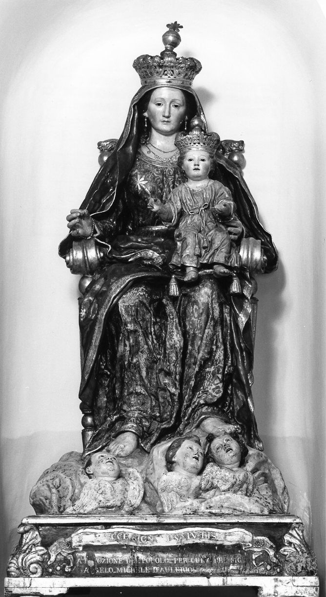- ISCRIZIONI sulla base - A DIVOZIONE DEL POPOLO PER CURA DEL SIG./ ANGELO MICHELE D'AULERIO/ MICHELE GIACOMO FALCUCCI DI ATESSA FECE NEL 1857 - Falcucci M. G - lettere capitali -