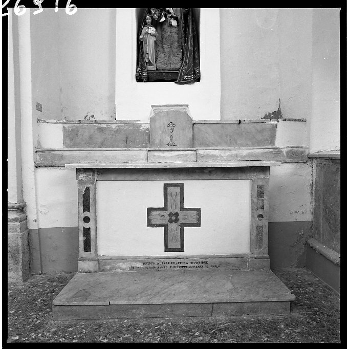 - ISCRIZIONI sullo zoccolo del paliotto - QUESTO ALTARE FU FATTO A DEVOZIONE/ DI PASQUALE DI SANTO E GIUSEPPE CARANCI FU PAOLO - lettere capitali -