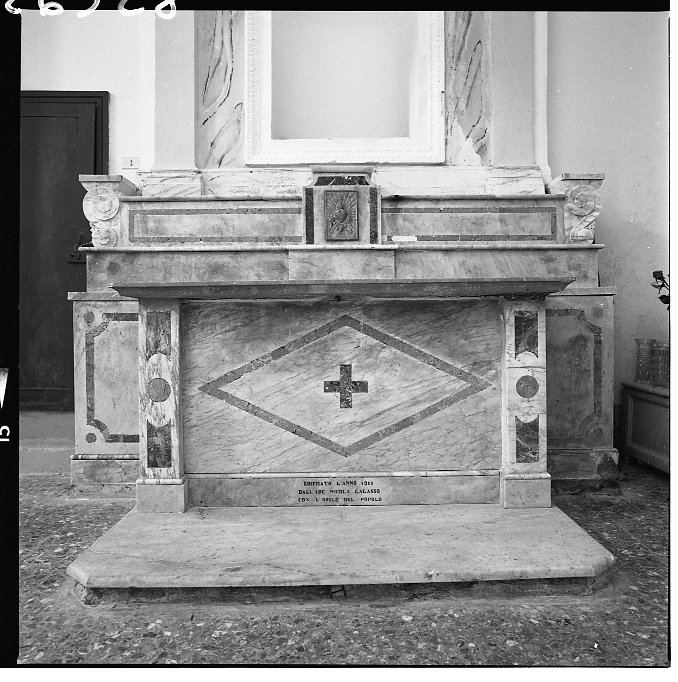 - ISCRIZIONI sullo zoccolo del paliotto - EDIFICATO L'ANNO 1911/ DALL'ARC. NICOLA GALASSO/ CON L'OBOLO DEL POPOLO - lettere capitali/ numeri arabi -