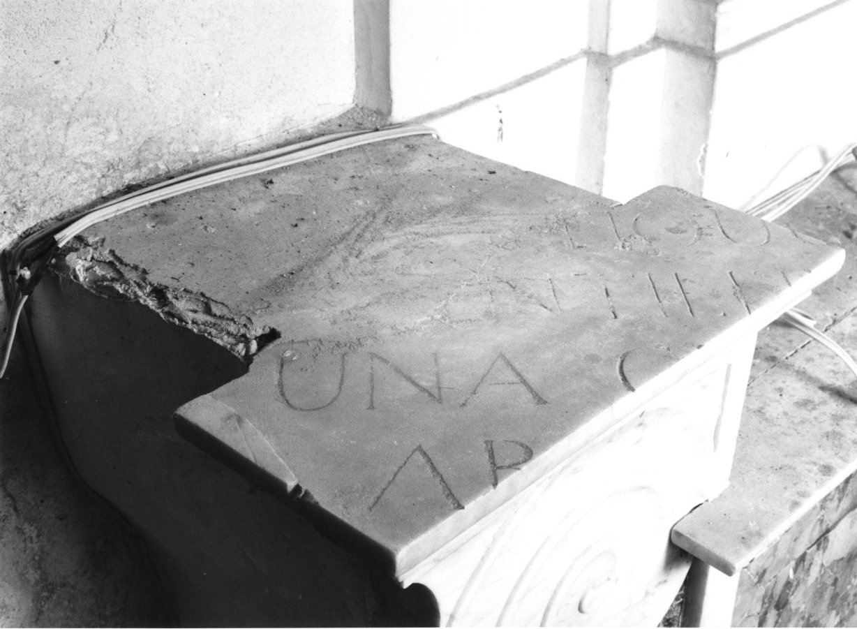 - ISCRIZIONI sulla lastra, sopra la voluta di sinistra - [---] IOV [---]/ NTILIT [---]/ UNA C [---]/ AR - lettere capitali -