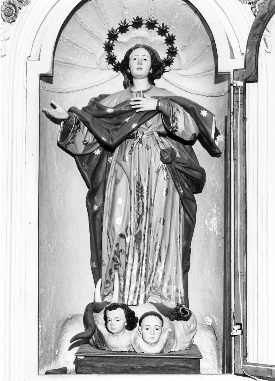 Personaggi: Madonna Immacolata. Figure: cherubini. Attributi: (Madonna Immacolata) falce di luna. Personificazioni: serpente