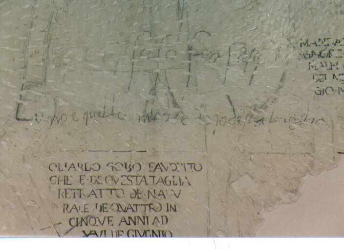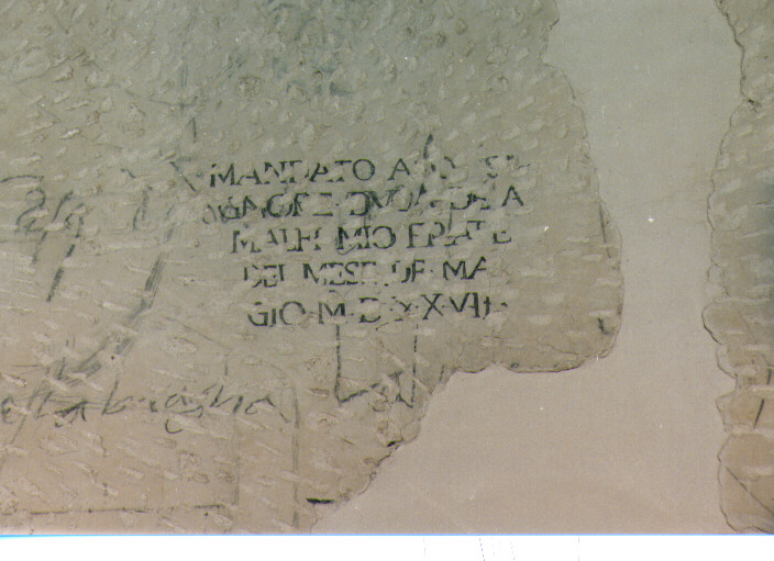 - ISCRIZIONI davanti al cavallo - MANDATO A [...] GNORE DUCA DE A/ MALFI MIO FRATE/ DEL MESE DE MA/ GIO MDXXVII - corsivo -