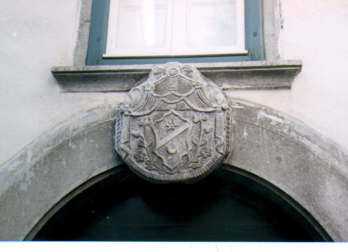 - STEMMI chiave di volta - gentilizio - Stemma - scudo diviso in due, nella parte superiore presenta un fiore, nella parteinferiore una mezza luna