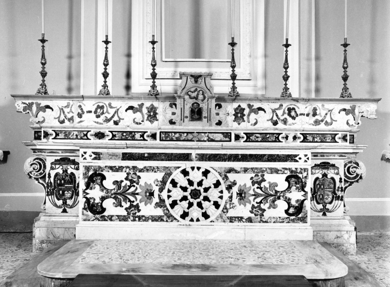 - NOTIZIE STORICO CRITICHE L'altare, per sua tipologia ad intarsio marmoreo dimensionale su fondobianco, è cronologicamente riconducibile all'inizio del XVIII secolo.Datazione confermata anche dalla presenza dello stemma del vescovoRendina (1708-1716) sui pilastrini laterali. L'opera, di buona qualitàesecutiva, risulta abbastanza rara nella regione, con esempi a Sepino(S.Cristina) e a Roccamandolfi (S.Liberato), databili tutti entro il 1730circa. L'esecuzione sul retro contrasta con i dati stilistici edocumentari. Si può ipotizzare che essa si riferisca allo spostamento delmanufatto dalla cattedrale di Boljano alla chiesa attuale ad operadell'altrimenti sconosciuto A. Pallante. In quegli anni infatti lacattedrale viene sottoposta a sostanziali ristrutturazioni