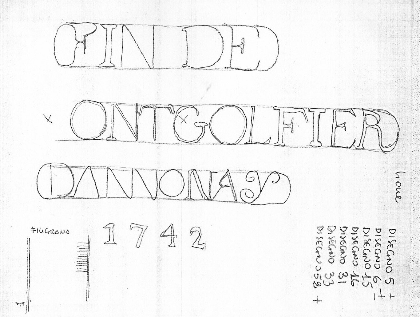 - NOTIZIE STORICO CRITICHE Il disegno è ascrivibile al sec. XVIII e più precisamente ad un periodo successivo al 1742 in quanto il cartoncino presenta la filigrana: FINDE/ R (cuore) MONTGOLFIER/ D'ANNONAY/ 1742. La filigrana completa, visibile nei disegni NCTN 72247- 72248 e 72249, porta anche la raffigurazione di un monaco che porta una croce (o candela). Si tratta di materiale prodotto in una cartiera di Lione come altro materiale della stessa collezione la cui filigrana porta la stessa dicitura, ma con stile grafico diverso e la data 1768 (cfr.C.M. Briquet-Les filigranes ...1907- vol.IV p. 646; vol.II p. 257). Lo stesso tipo di cartoncino è supporto dei disegni NCTN 72242-72244-72245-722456 (intercolumni e particolari ordine composito e corinzio) NCTN 72247-72248 (prospetto e sezione di palazzo) NCTN 72249-72250 (prospetto e sezione di Casino di Campagna) e NCTN 72252-72253-72254 (manufatto ordine tuscanico)