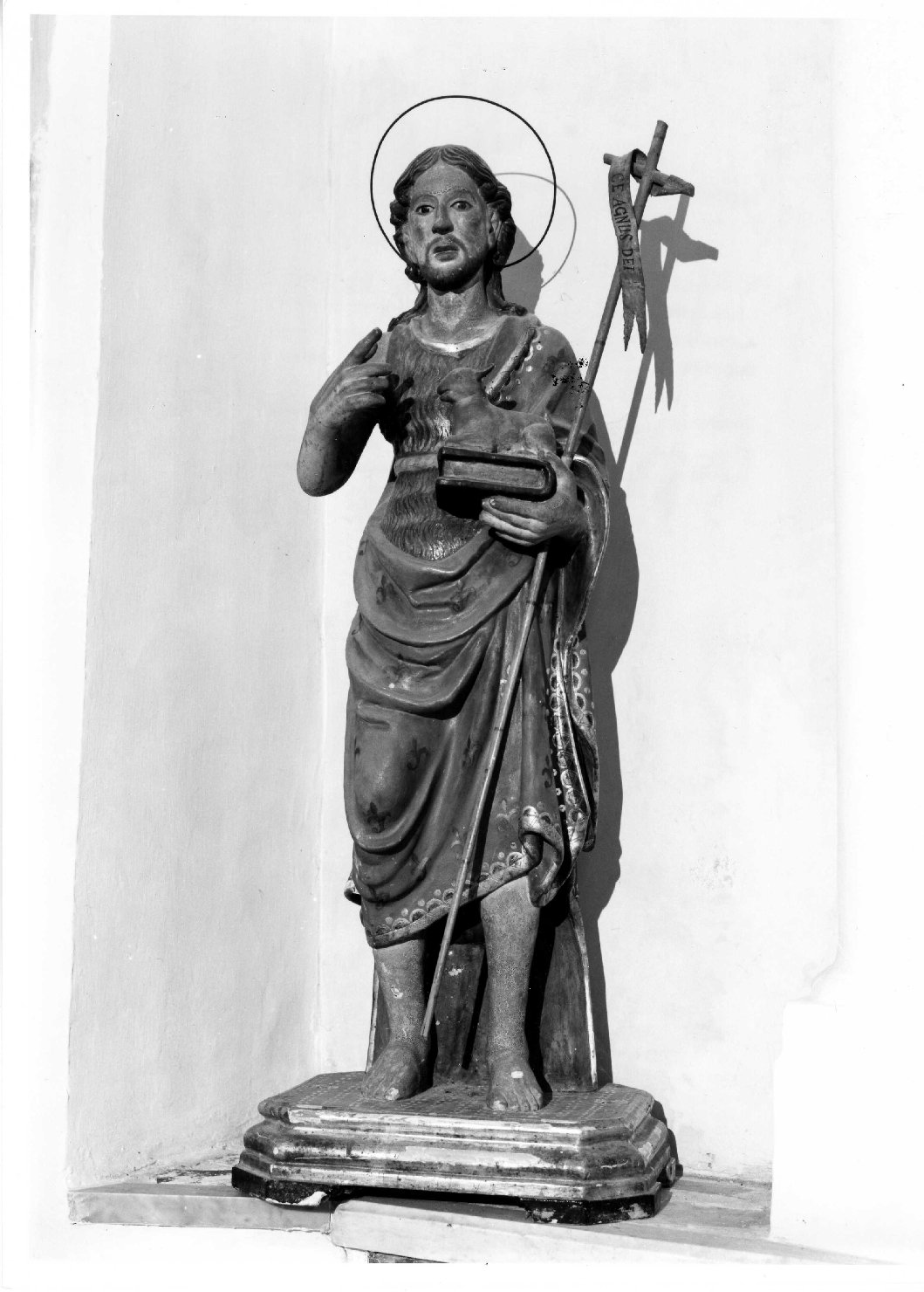 Personaggi: San Giovanni Battista. Attributi: (San Giovanni Battista) libro; agnello; croce con cartiglio